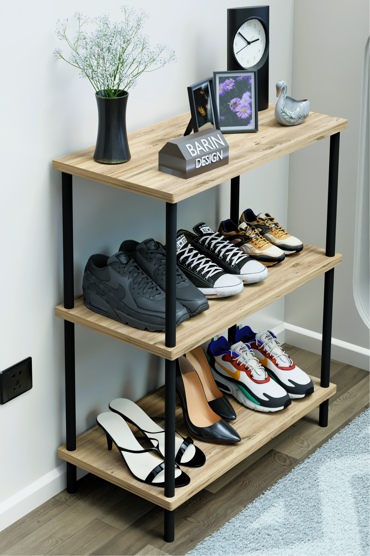 3 Katlı Ayakkabılık Raf - Çevir Tak Sistemli | Kolay Kurulum | Metal Gövde | Ahşap Raflı Organizer Atlantik Çam