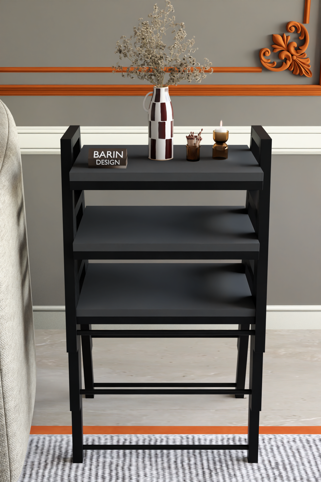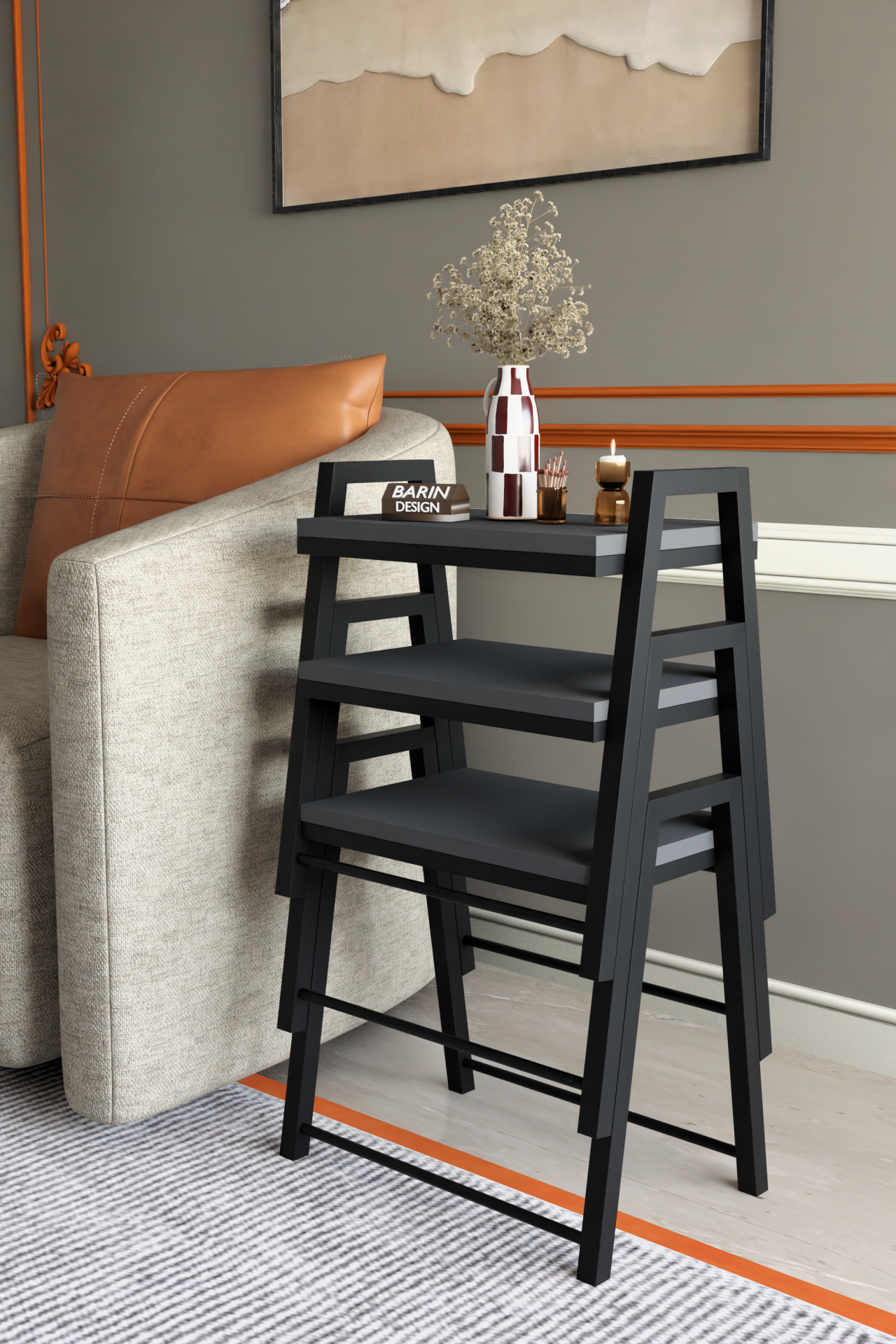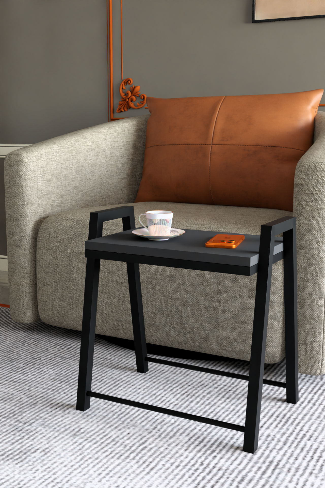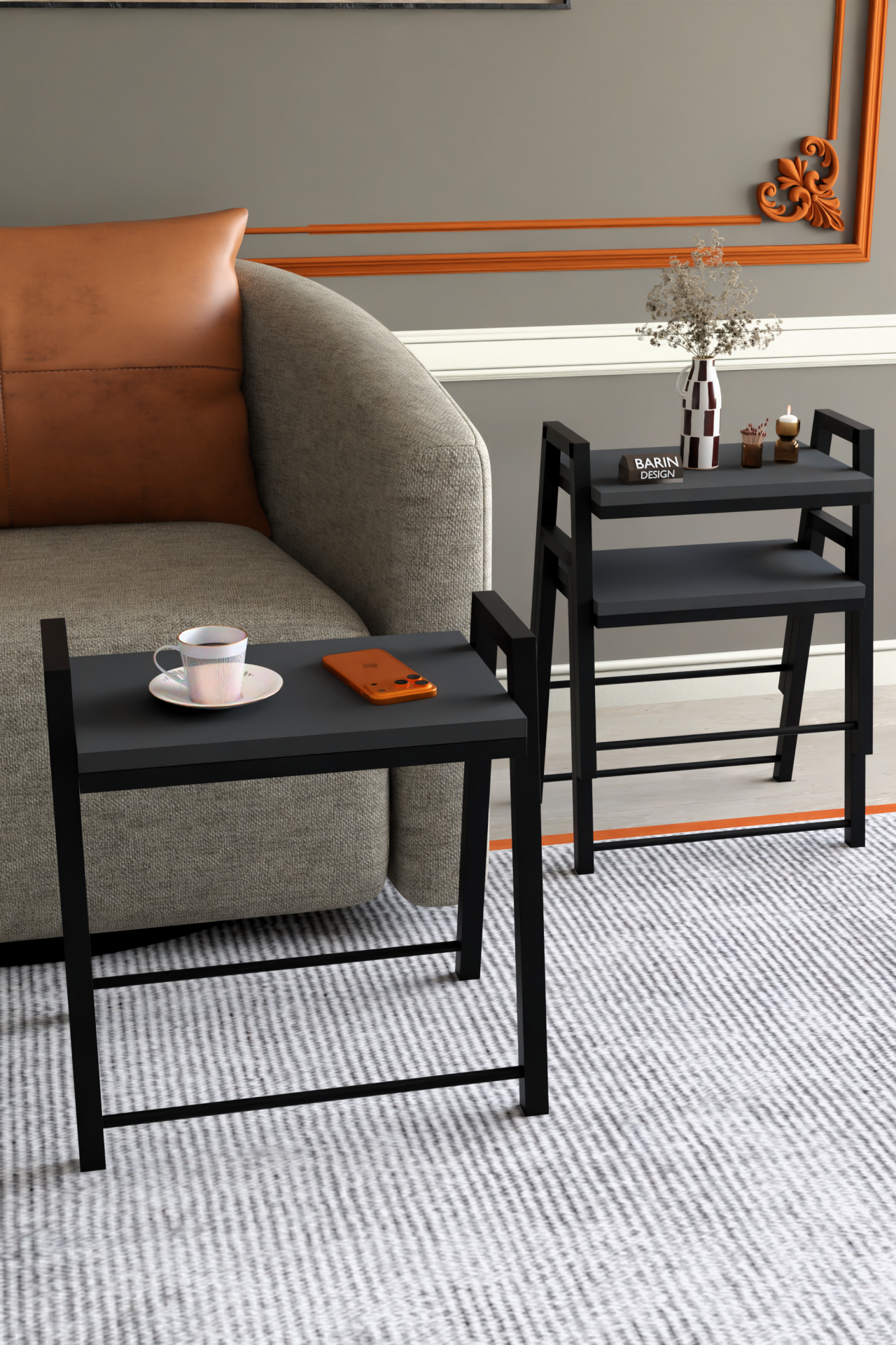 3'lü İç İçe Geçmeli Dikdörtgen Zigon Sehpa, Salon Sehpası, Kahve Sehpası Antrasit