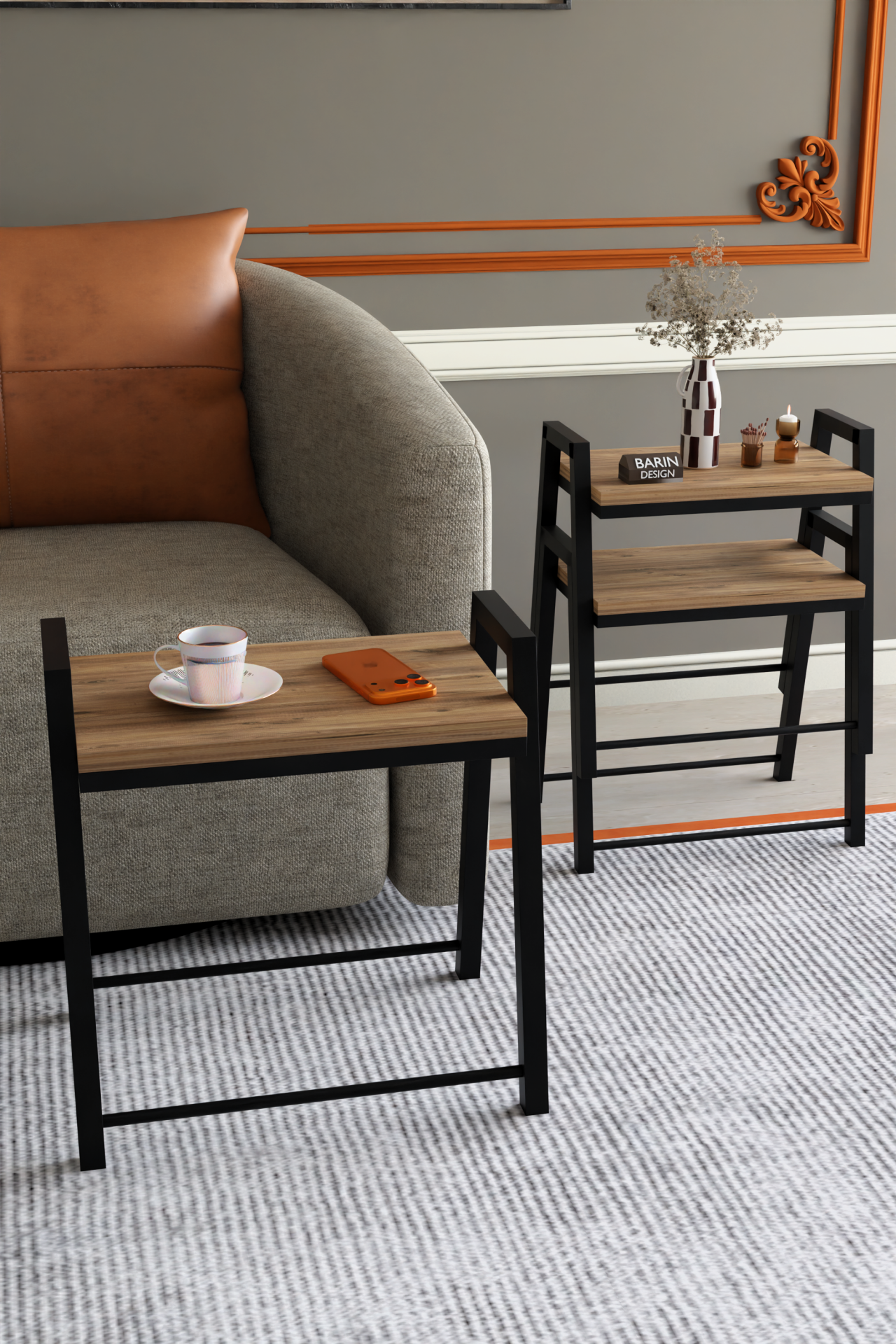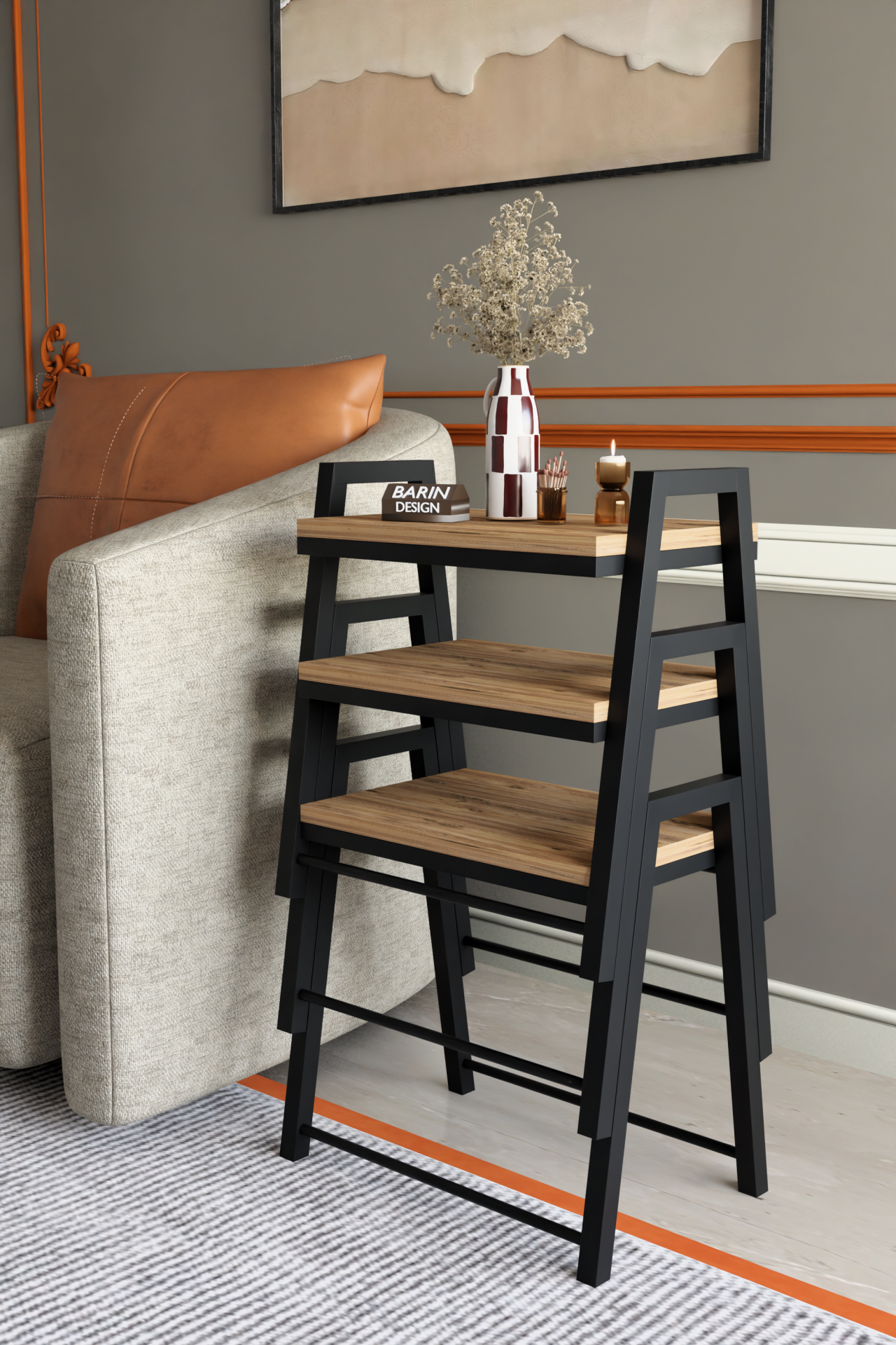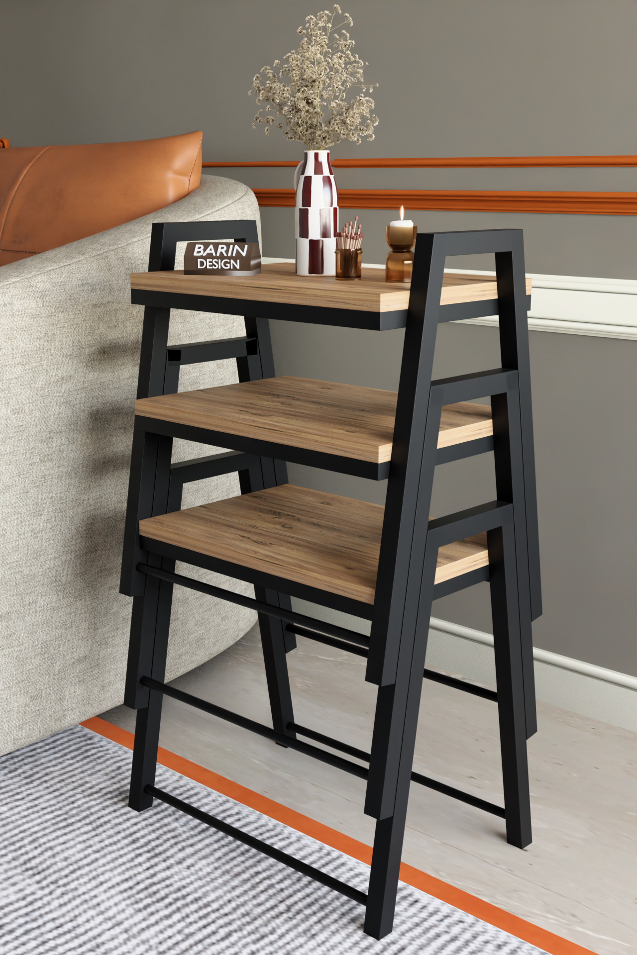 3'lü İç İçe Geçmeli Dikdörtgen Zigon Sehpa, Salon Sehpası, Kahve Sehpası Atlantik Çam