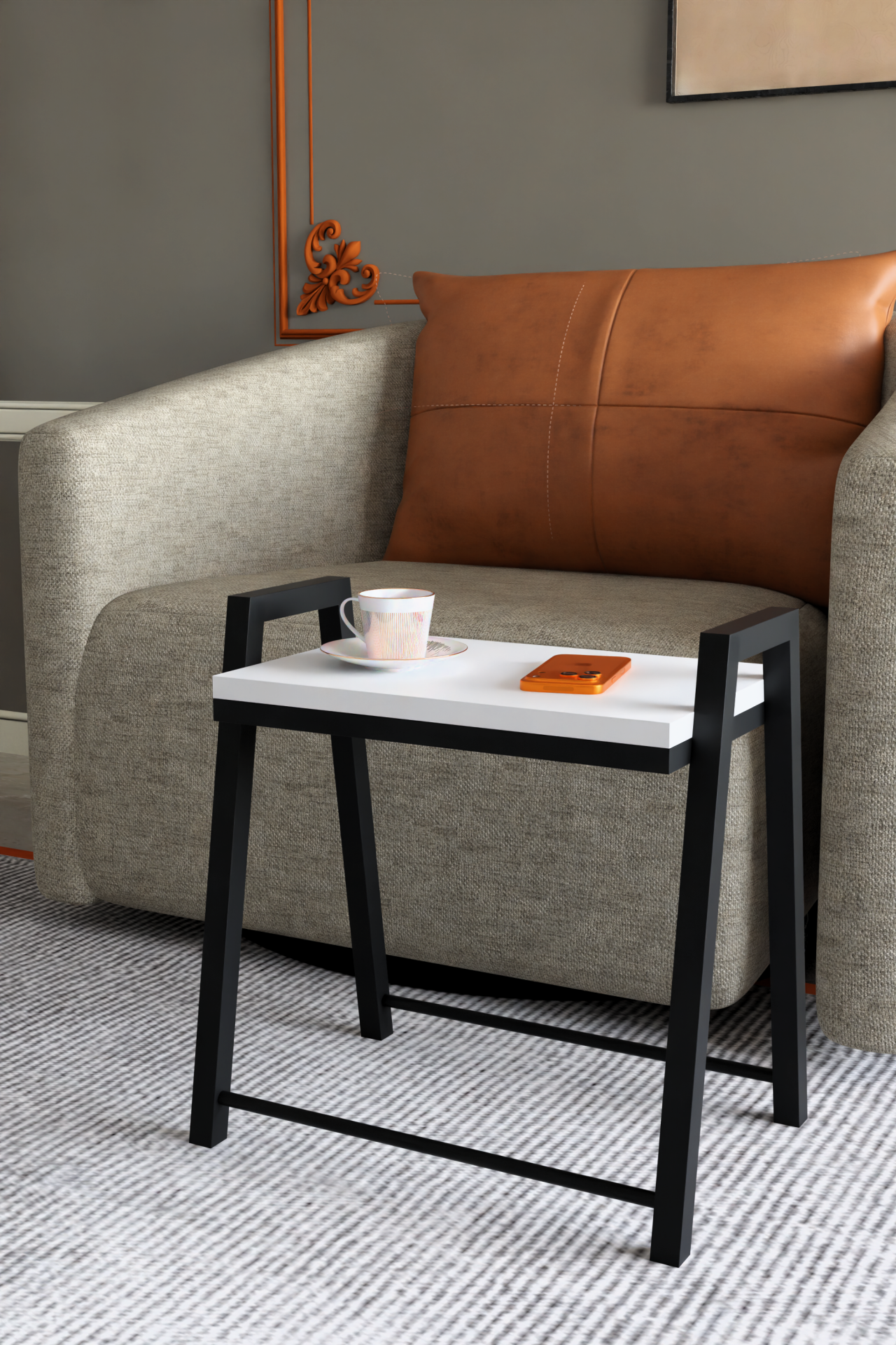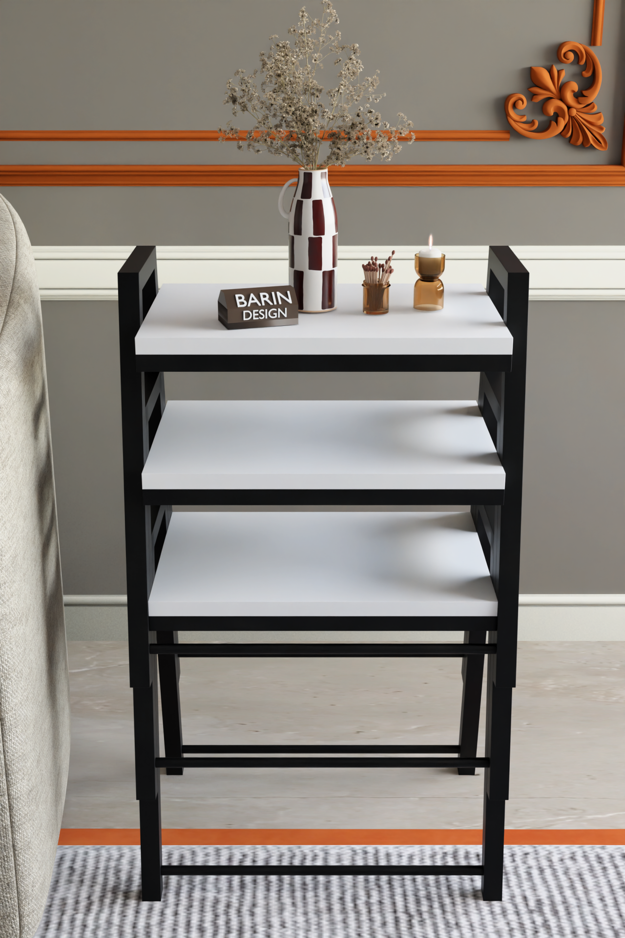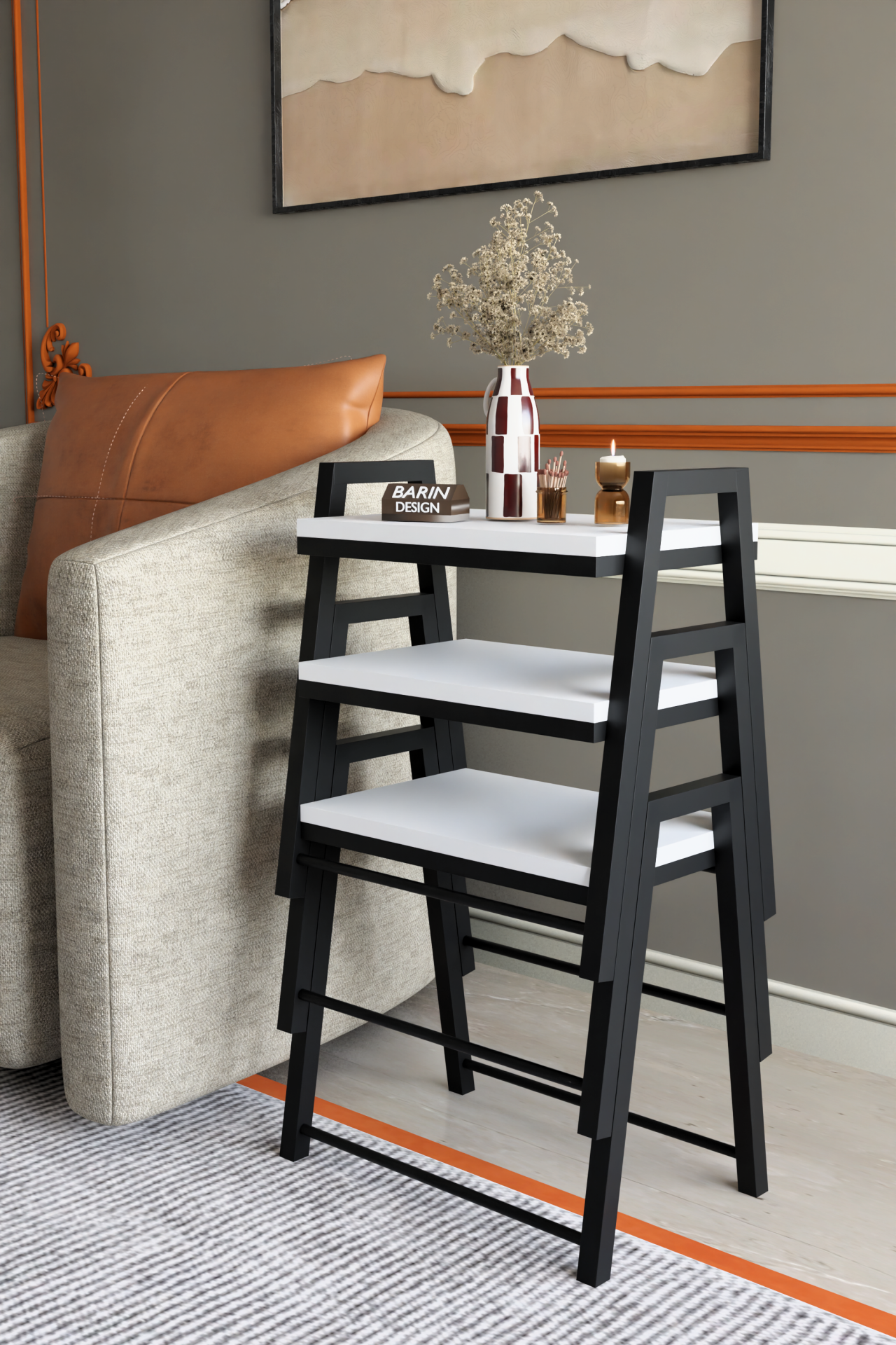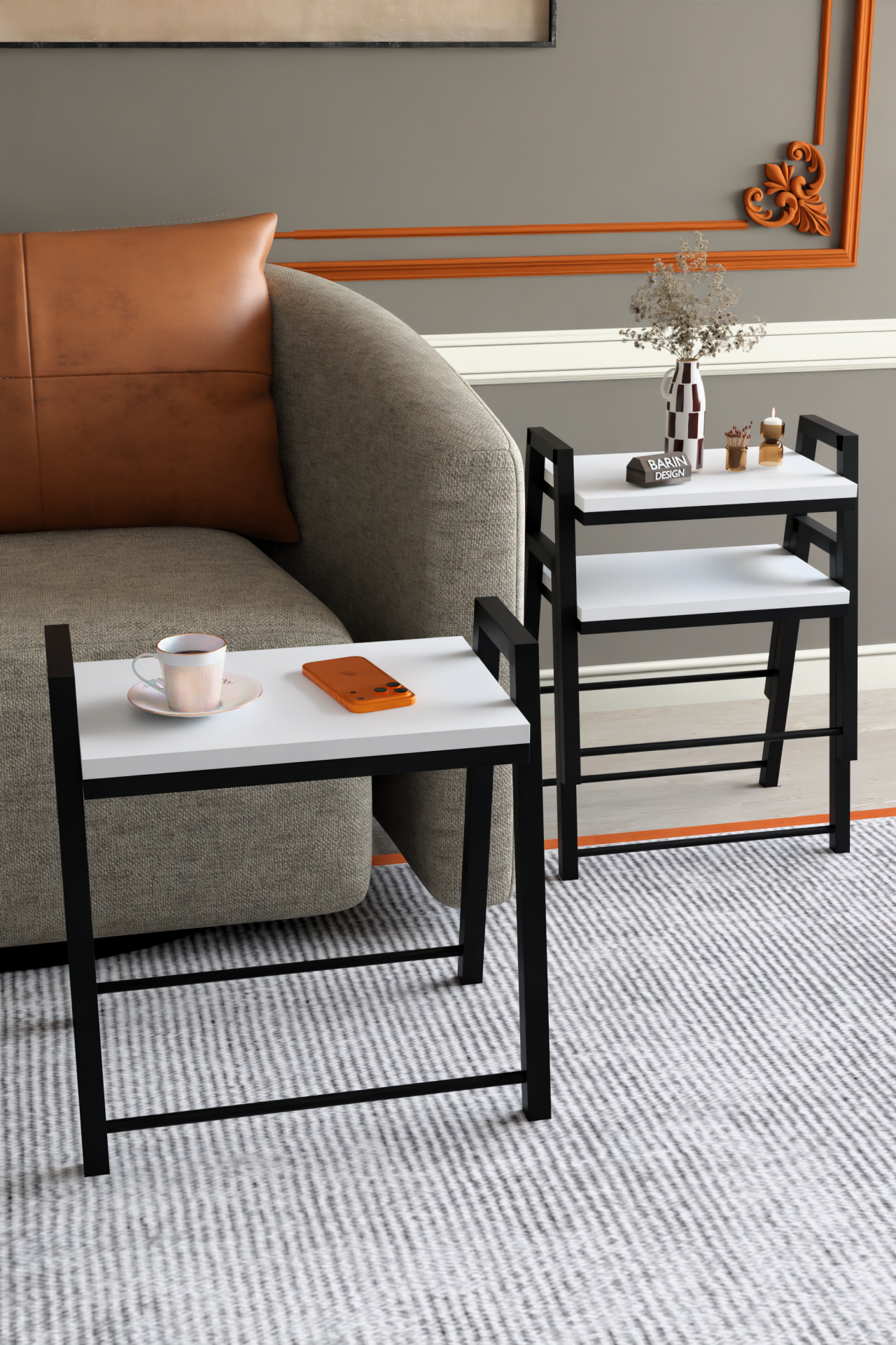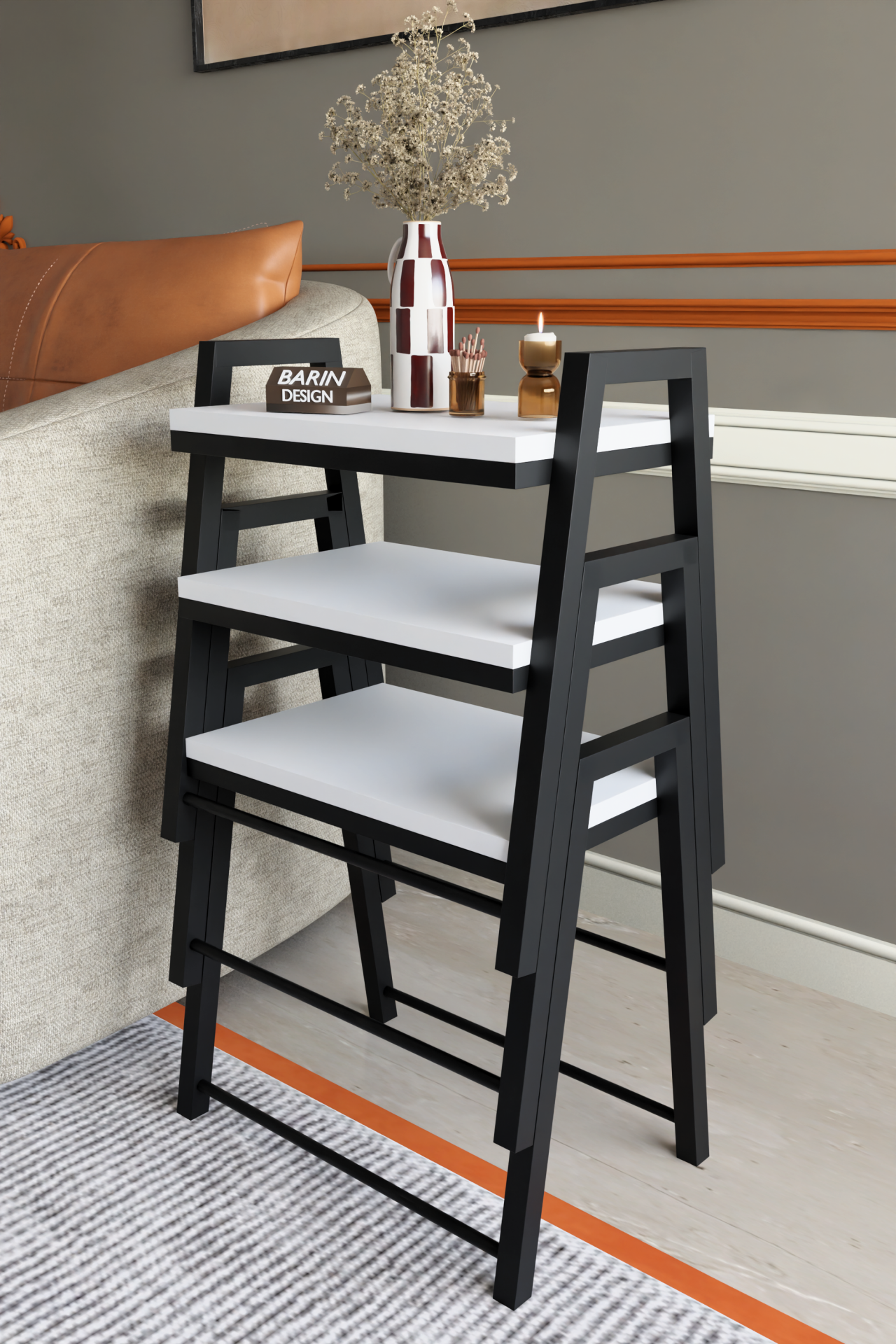 3'lü İç İçe Geçmeli Dikdörtgen Zigon Sehpa, Salon Sehpası, Kahve Sehpası Beyaz