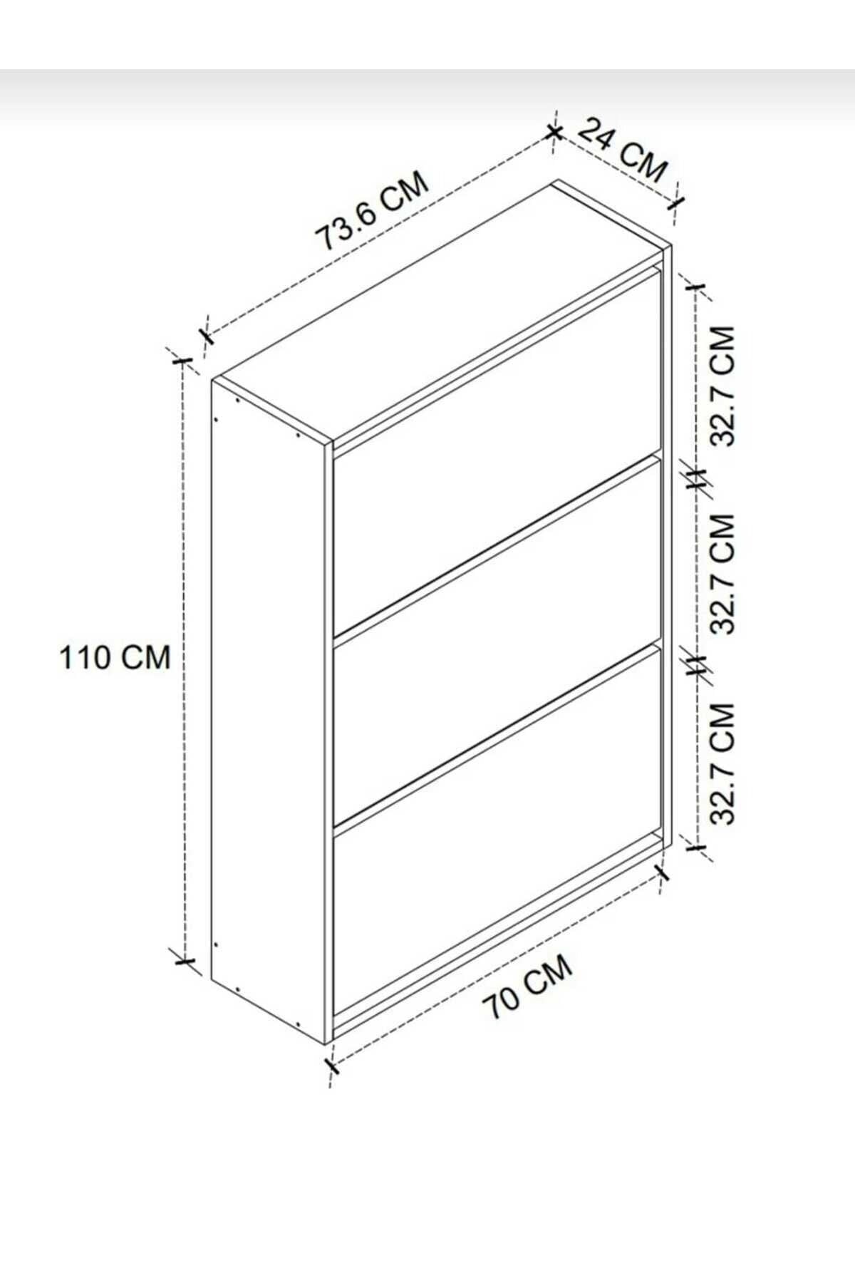 3 Raflı Ayakkabılık Düşer Kapak Kayar Kapak Vestiyer Portmanto Katlı Bölmeli Kapı Önü Modern Atlantik Çam-Antrasit