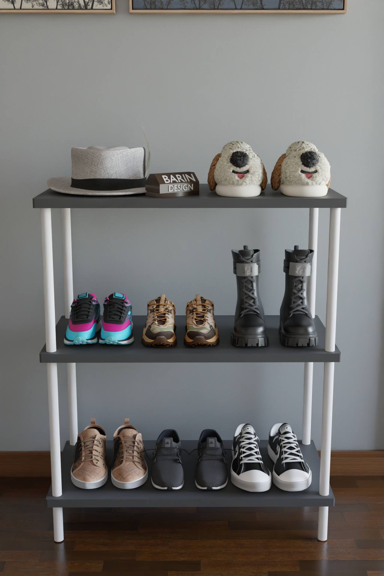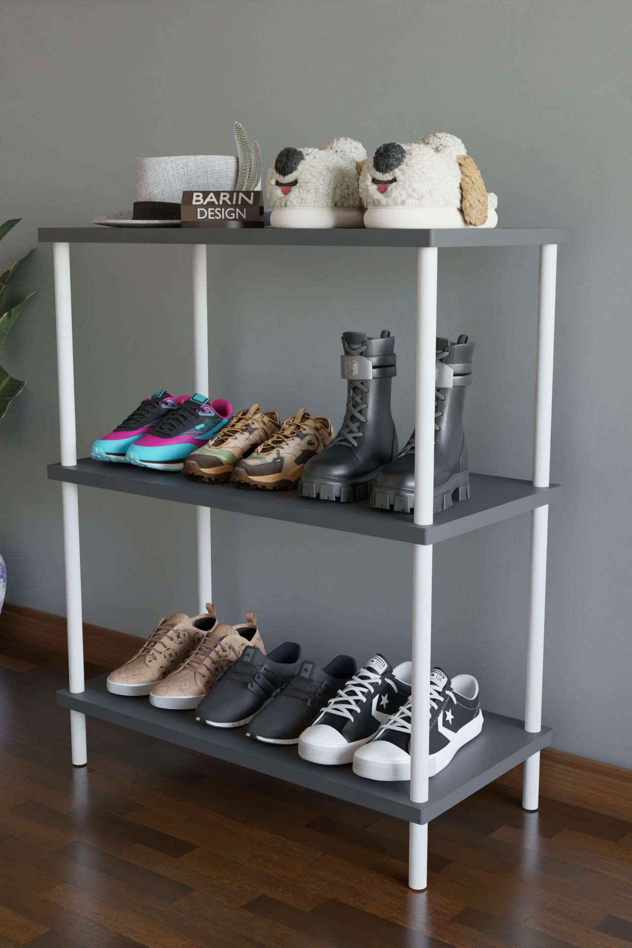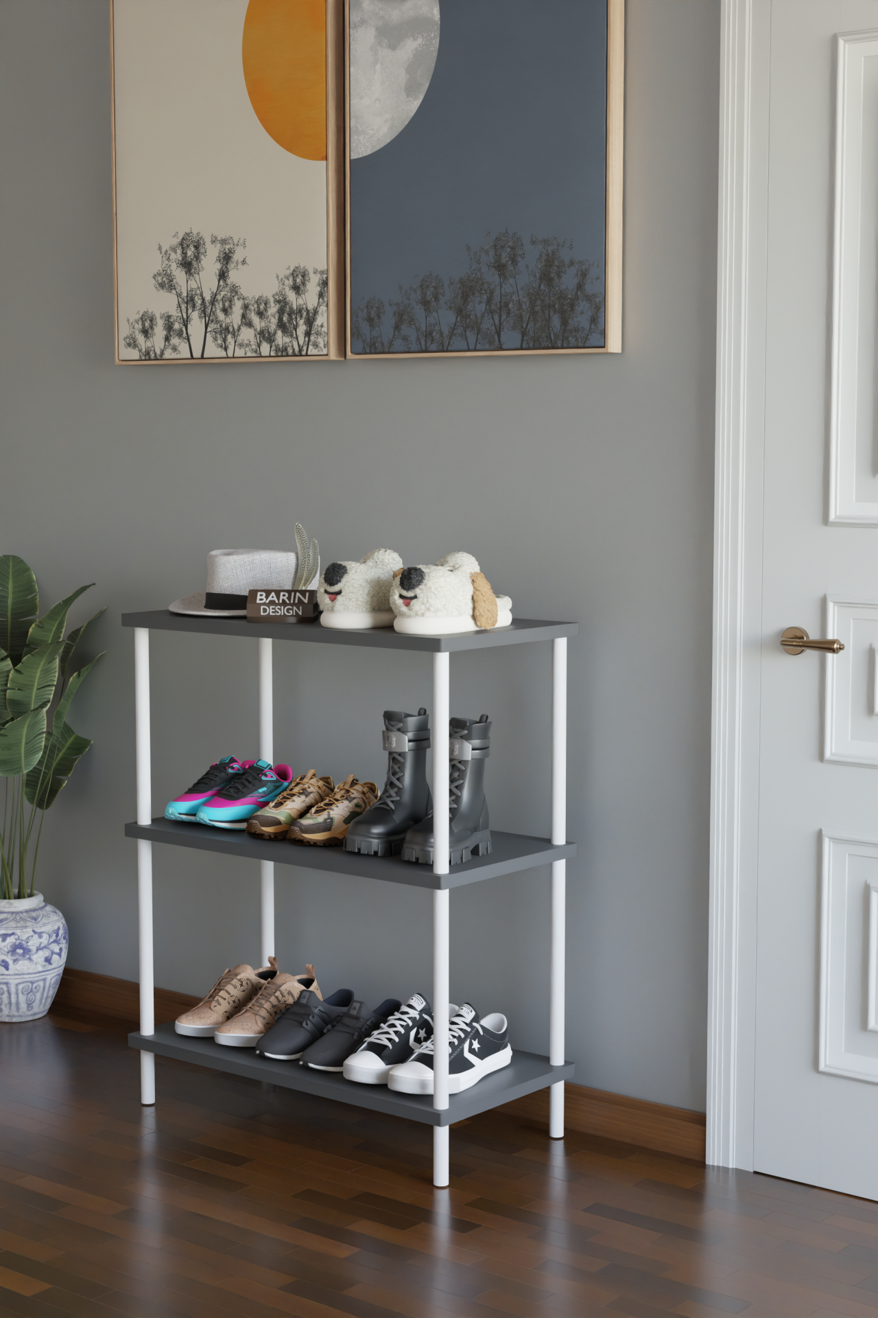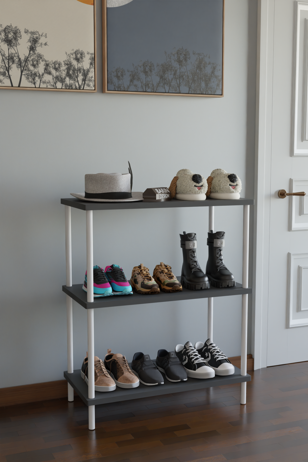 3 Raflı Çevir-Tak Beyaz Metal Gövdeli Çok Amaçlı Ayakkabılık ve Organizer Raf | Düzenleyici Raf Antrasit