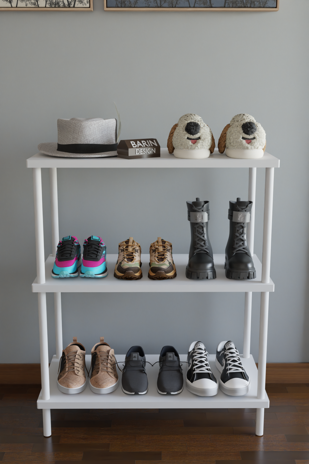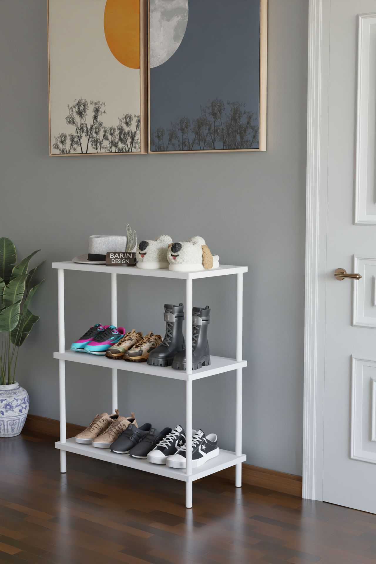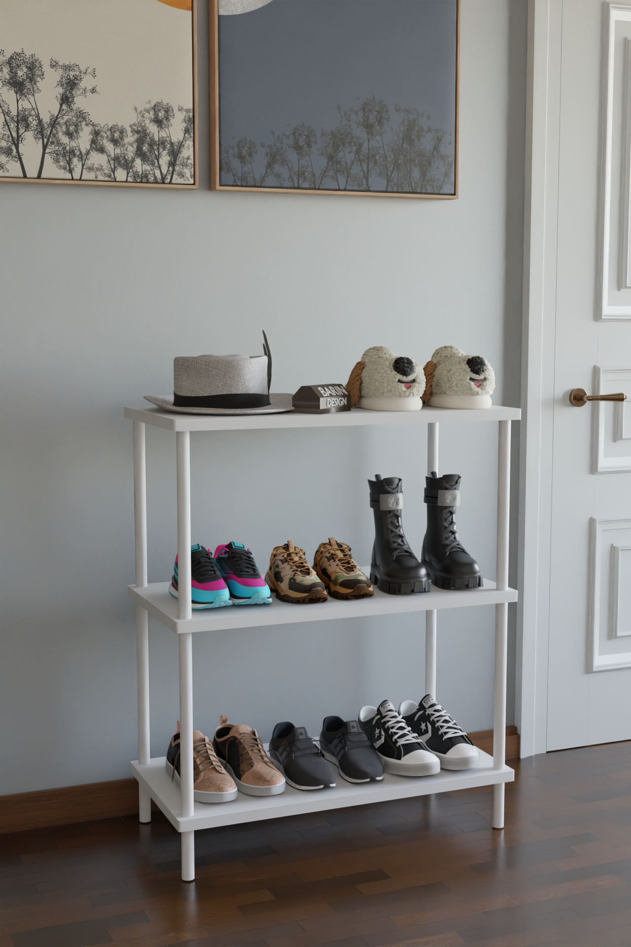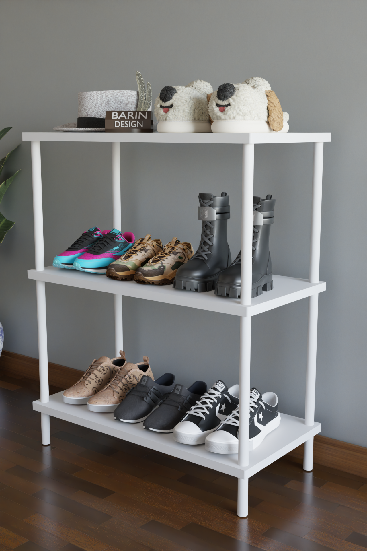 3 Raflı Çevir-Tak Beyaz Metal Gövdeli Çok Amaçlı Ayakkabılık ve Organizer Raf | Düzenleyici Raf Beyaz
