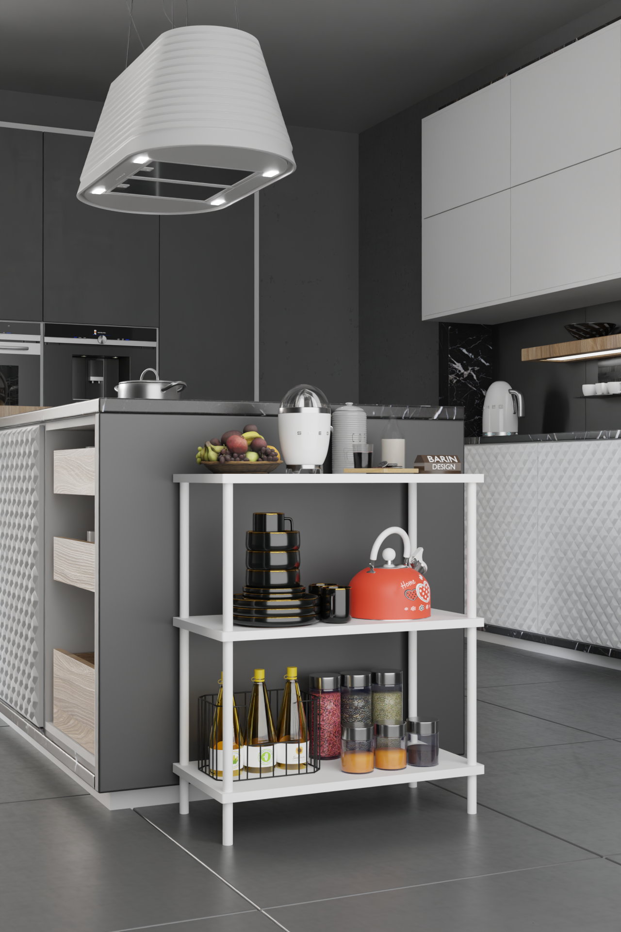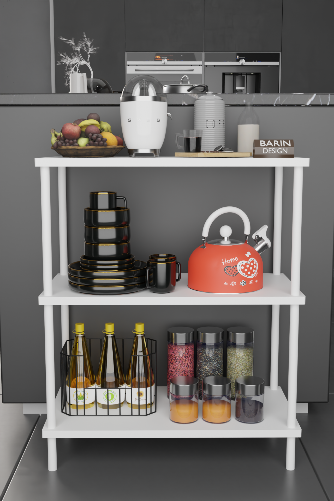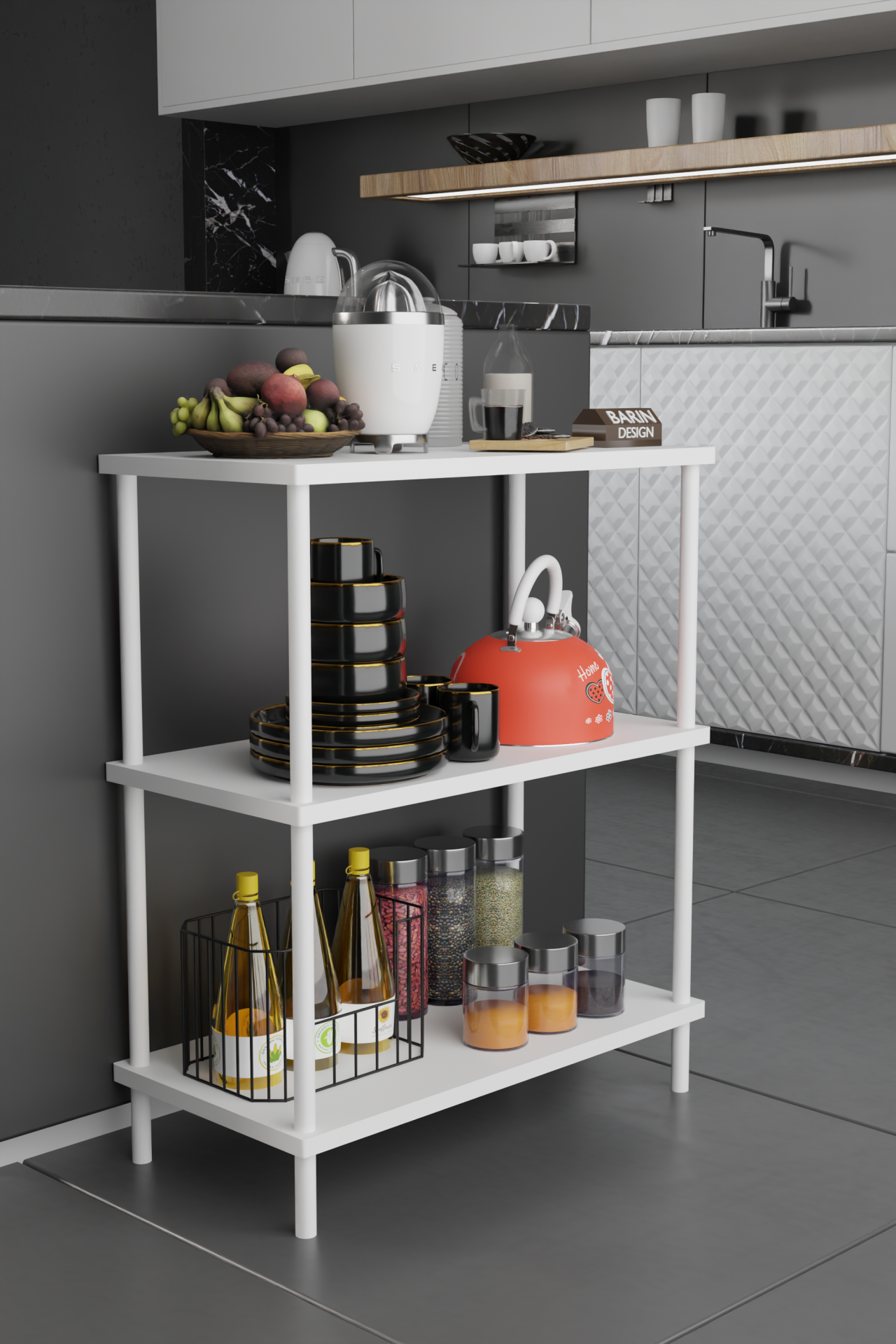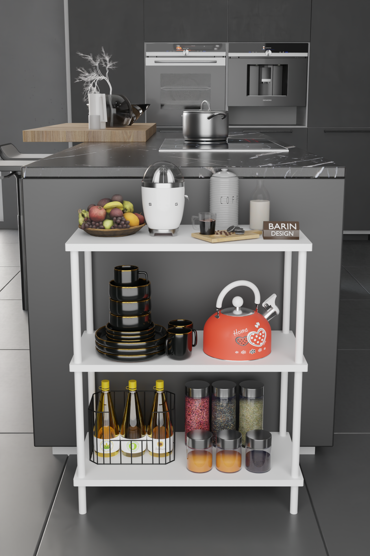3 Raflı Çevir-Tak Beyaz Metal Gövdeli Çok Amaçlı Mutfak Rafı ve Organizer Raf Düzenleyici Raf Beyaz