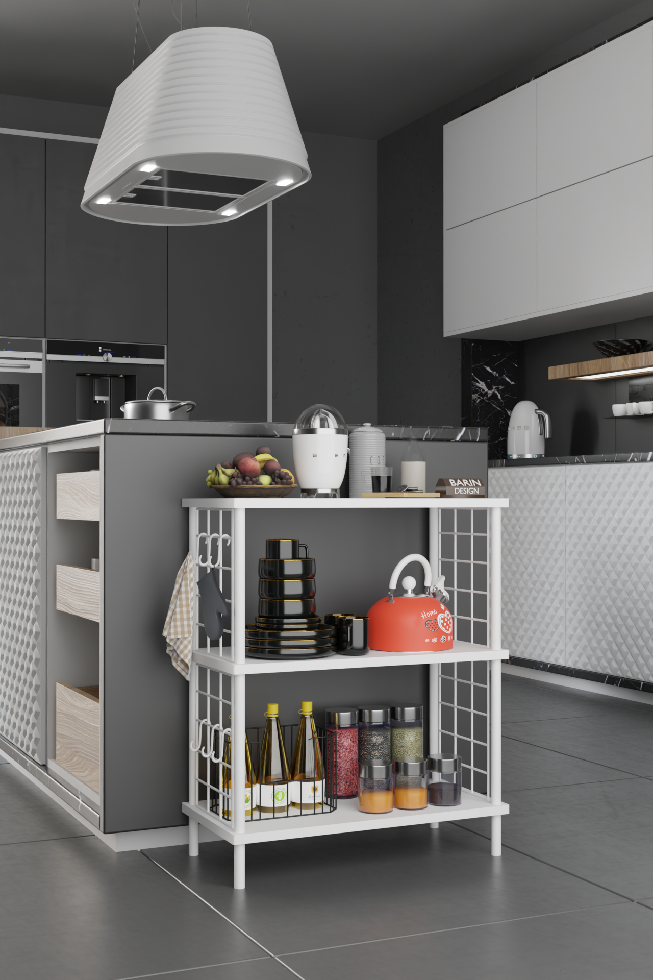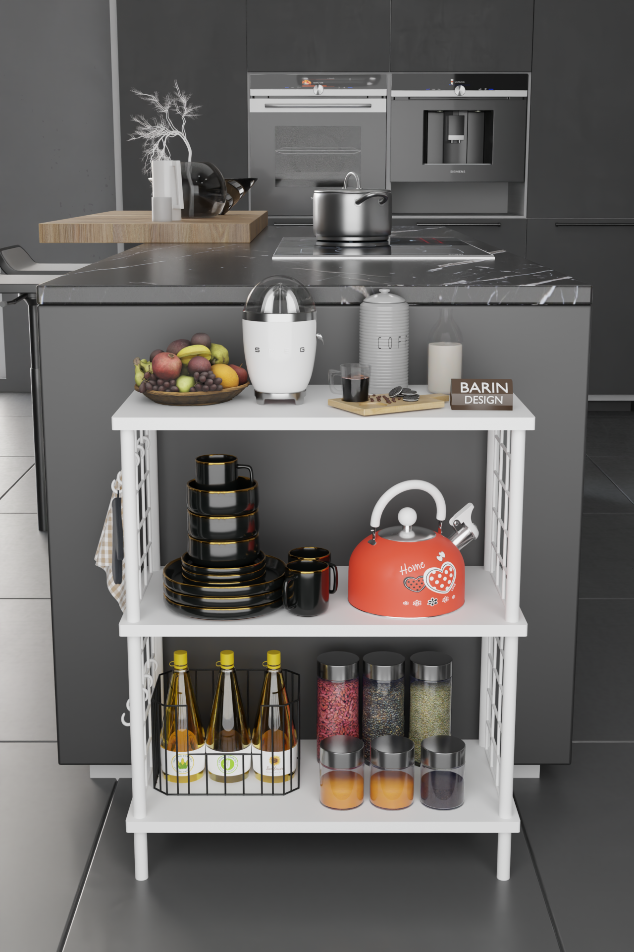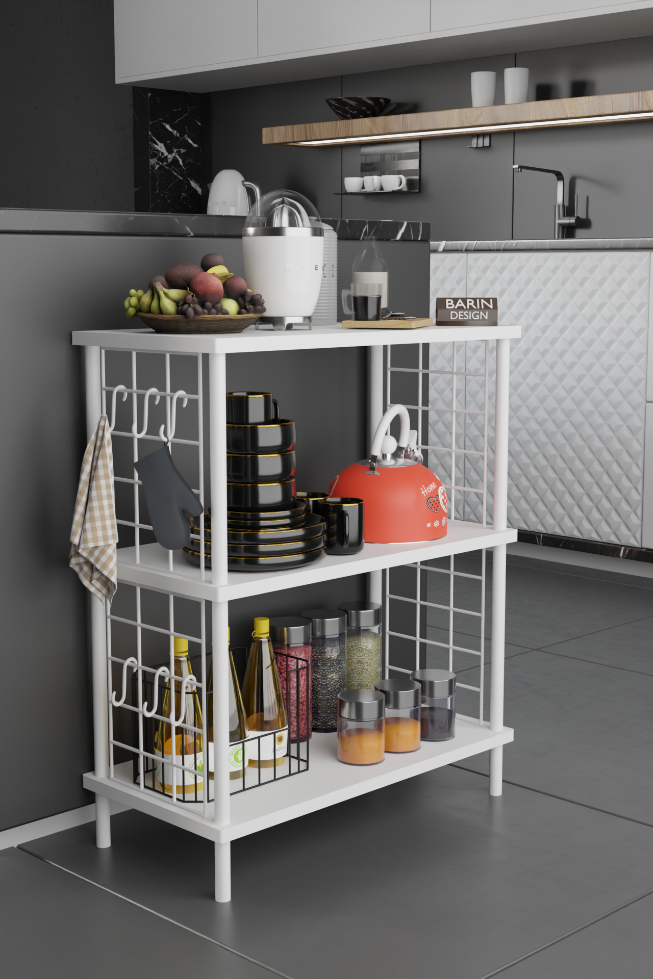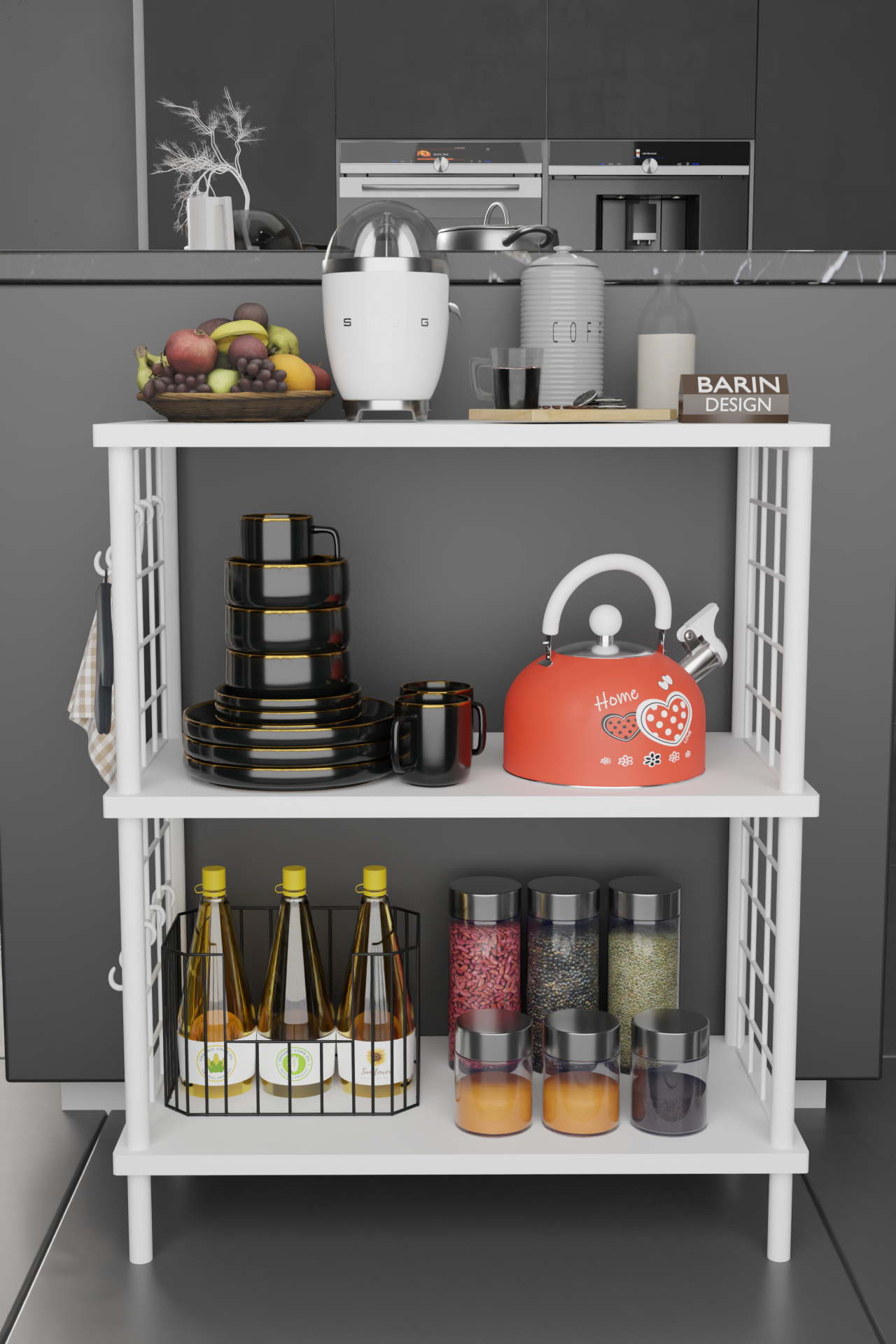 3 Raflı Çevir-Tak Beyaz Telli Metal Gövdeli Çok Amaçlı Mutfak Rafı ve Organizer Raf Beyaz