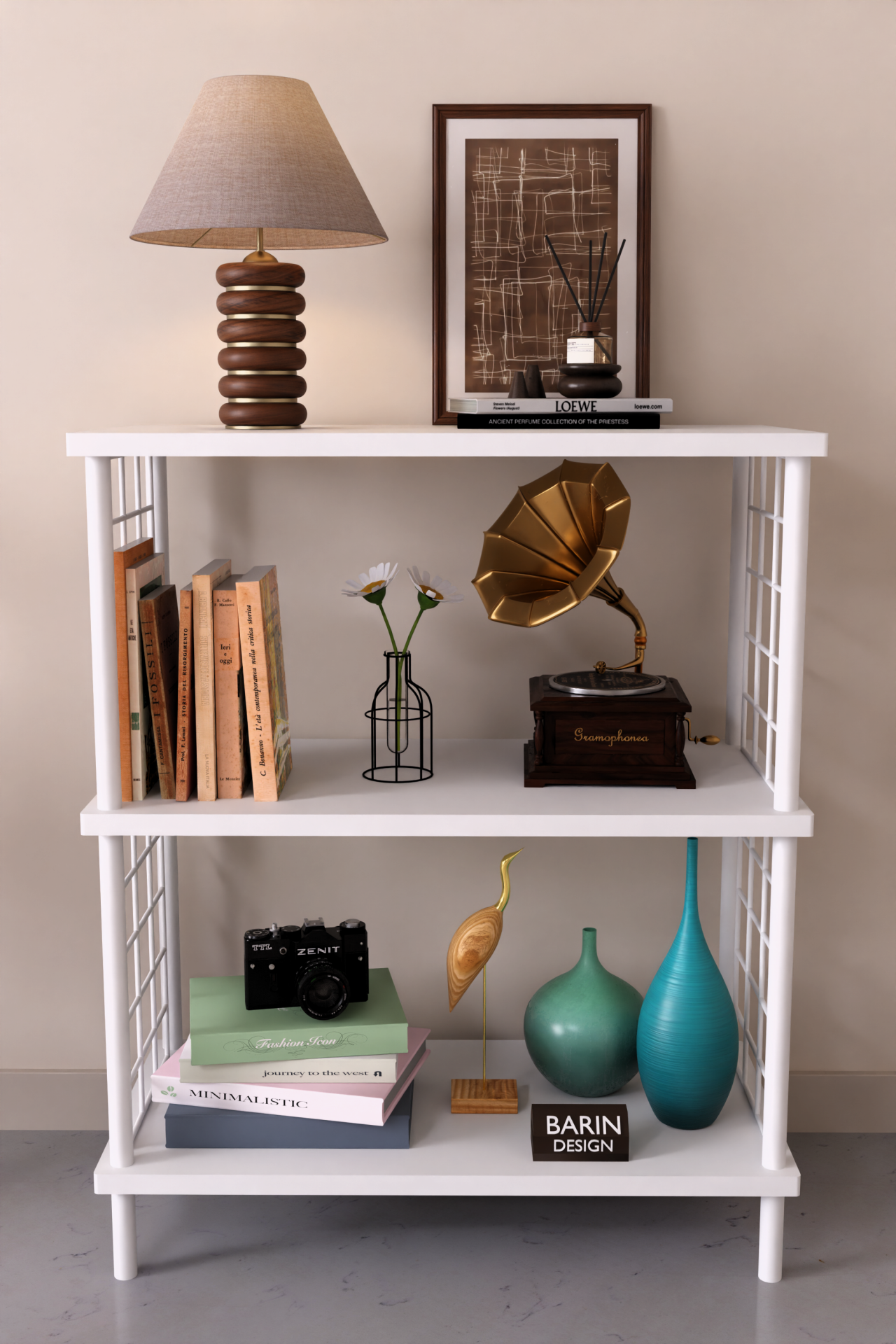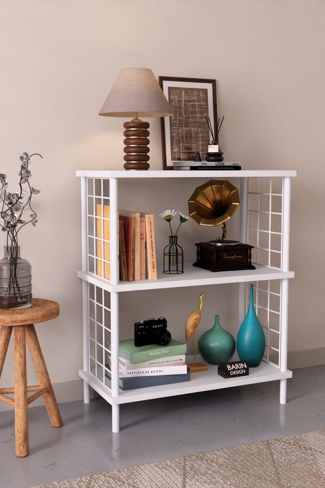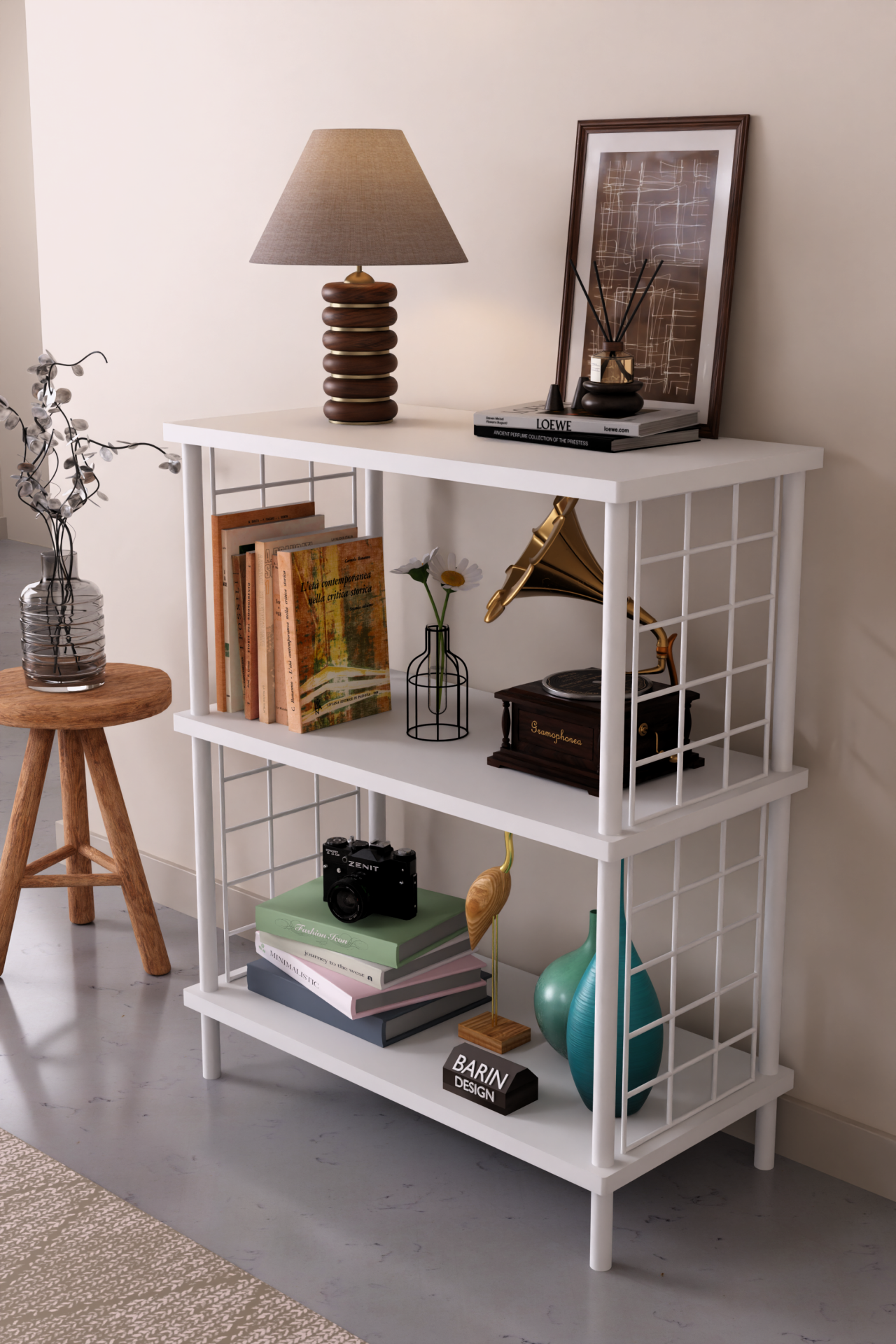 BARIN DESIGN Ürün Çevir Kur 3 Katlı Çok Amaçlı Raf – Tel Yan Panelli Açık Raflı Dekoratif Düzenleyici, Banyo, Salon, Mutfak Kullanımı (60x30x76 cm)