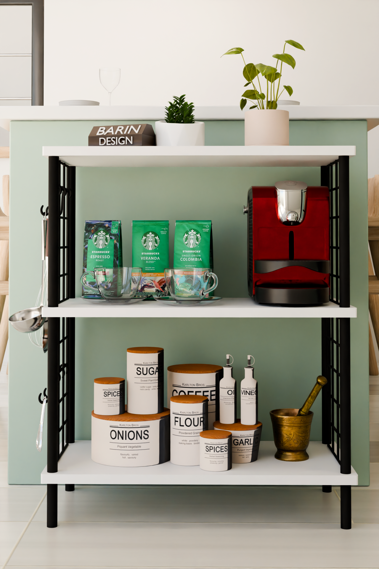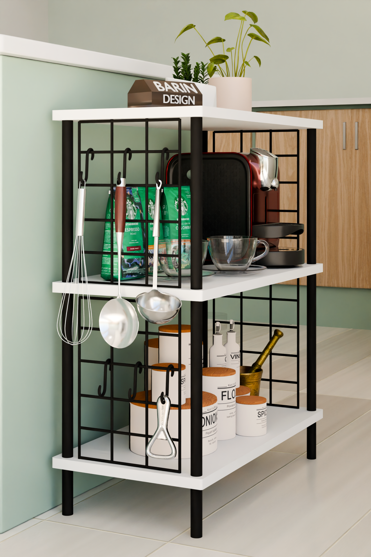 3 Raflı Telli Çevir-Kur Çok Amaçlı Raf Ünitesi | Metal Gövde Mutfak Düzenleyici | Pratik Organizer Beyaz
