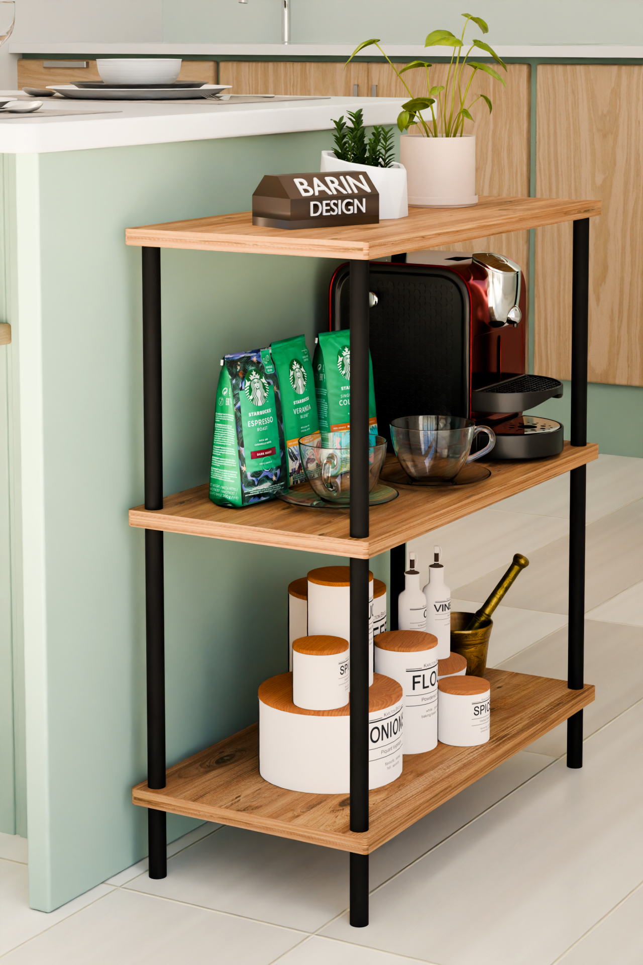 3Raflı Çevir-Kur Çok Amaçlı Raf Ünitesi Mutfak Ofis Düzenleyici Kolay Kurulum Portatif Organizer Raf Atlantik Çam