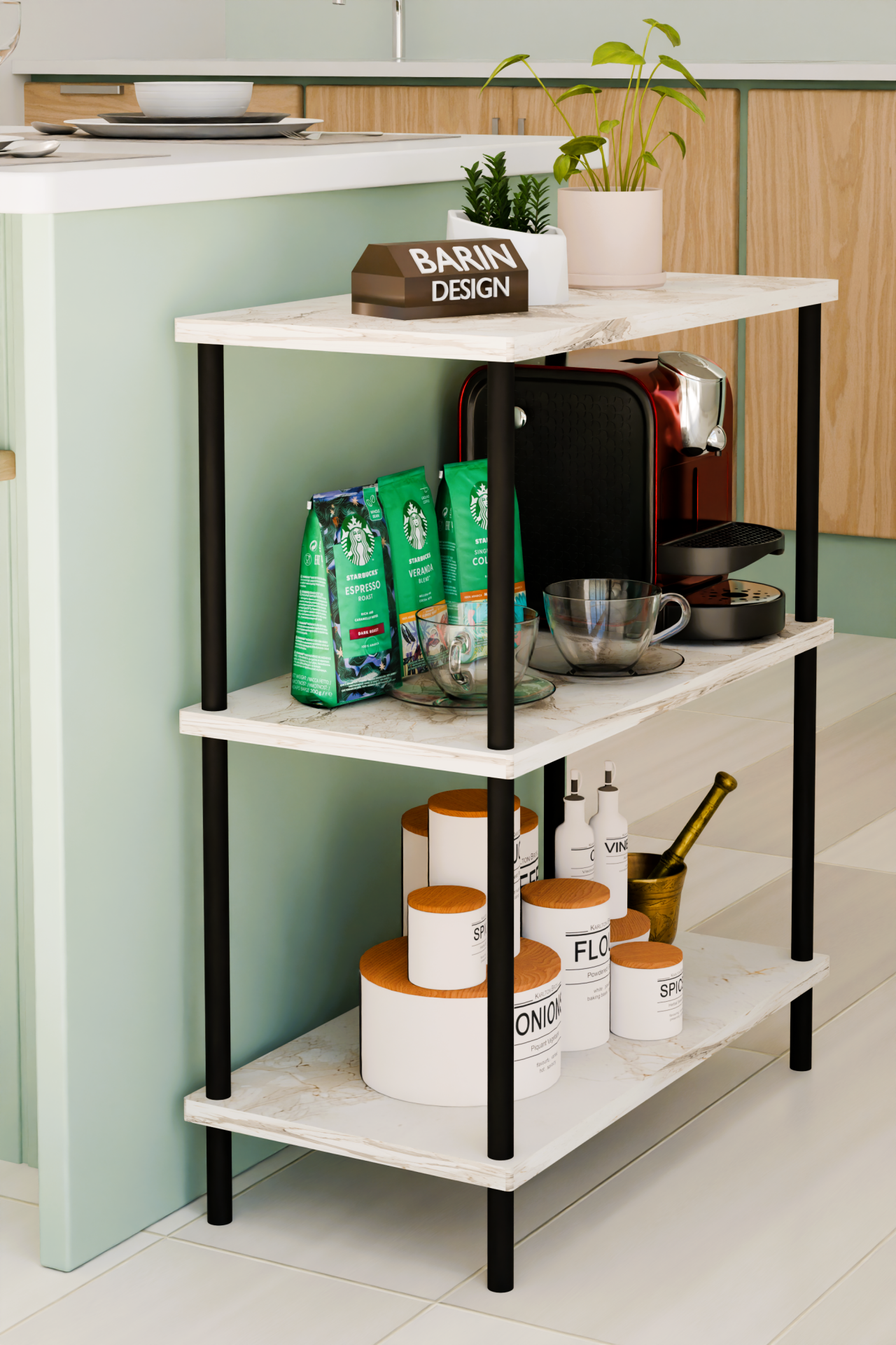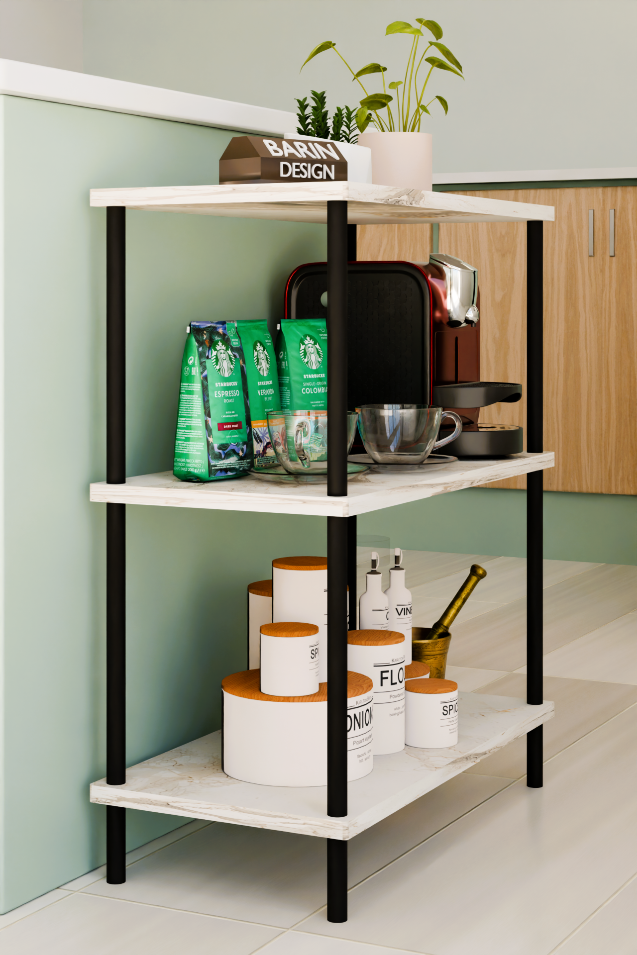 3Raflı Çevir-Kur Çok Amaçlı Raf Ünitesi Mutfak Ofis Düzenleyici Kolay Kurulum Portatif Organizer Raf Beyaz Mermer