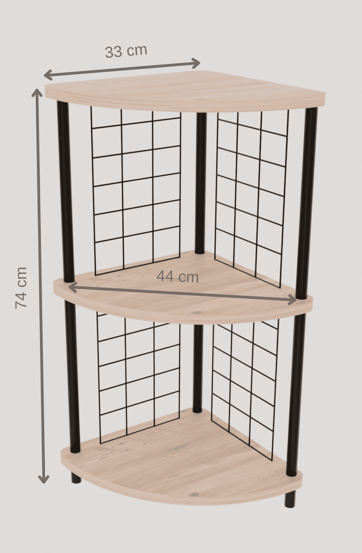 BARIN DESIGN 3 Katlı Metal Telli Köşe Kitaplık | Kolay Kurulumlu Çevir-Kur Raf Ünitesi | Modern Salon Dekoratif Raf
