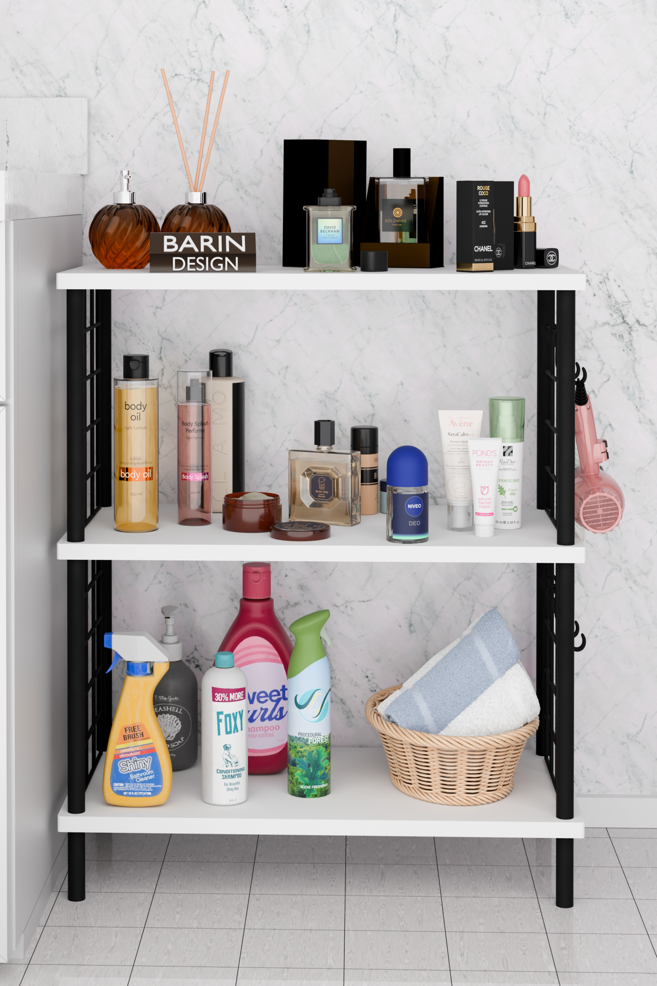 3Raflı Telli Çevir Kur Çok Amaçlı Banyo Rafı Dolabı Metal Gövdeli Organizer Düzenleyici Saklama Rafı Beyaz