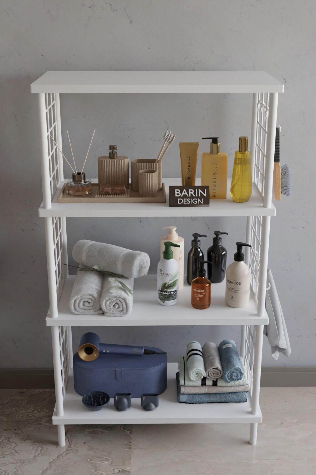 4 Katlı Çevir Kur Beyaz Metal Telli Banyo Rafı | Çok Amaçlı Düzenleyici, Organizer, Stand - Banyo Dolabı