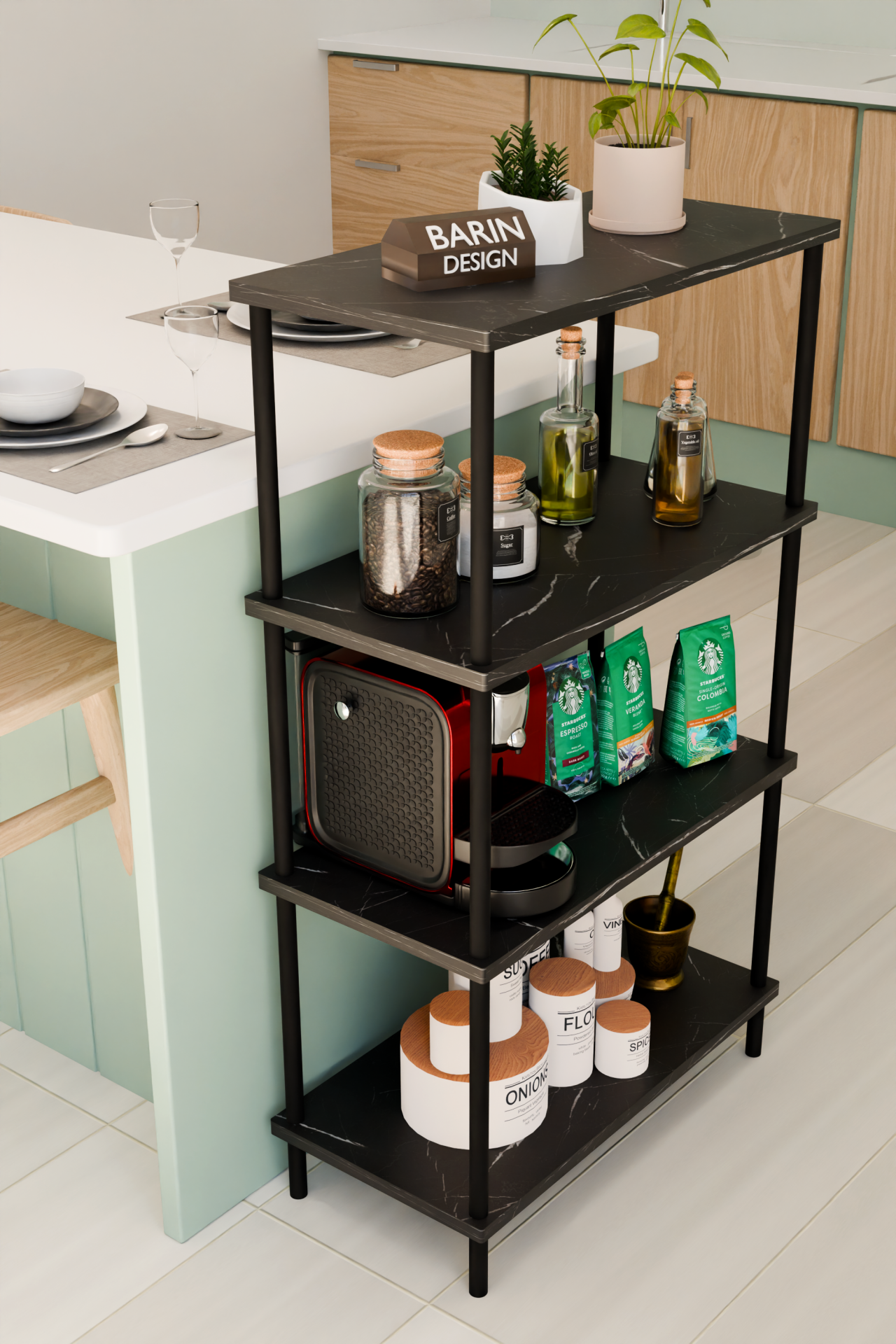 4 Katlı Çevir Kur Mutfak Rafı Çok Amaçlı Düzenleyici, Baharatlık, Kahve Köşesi, Açık Mutfak Dolabı Siyah Mermer