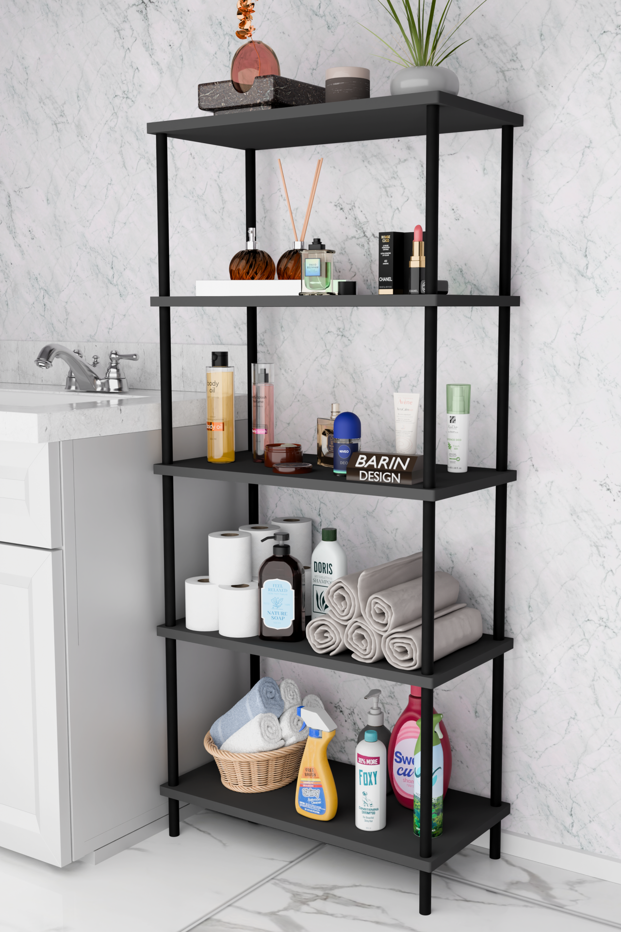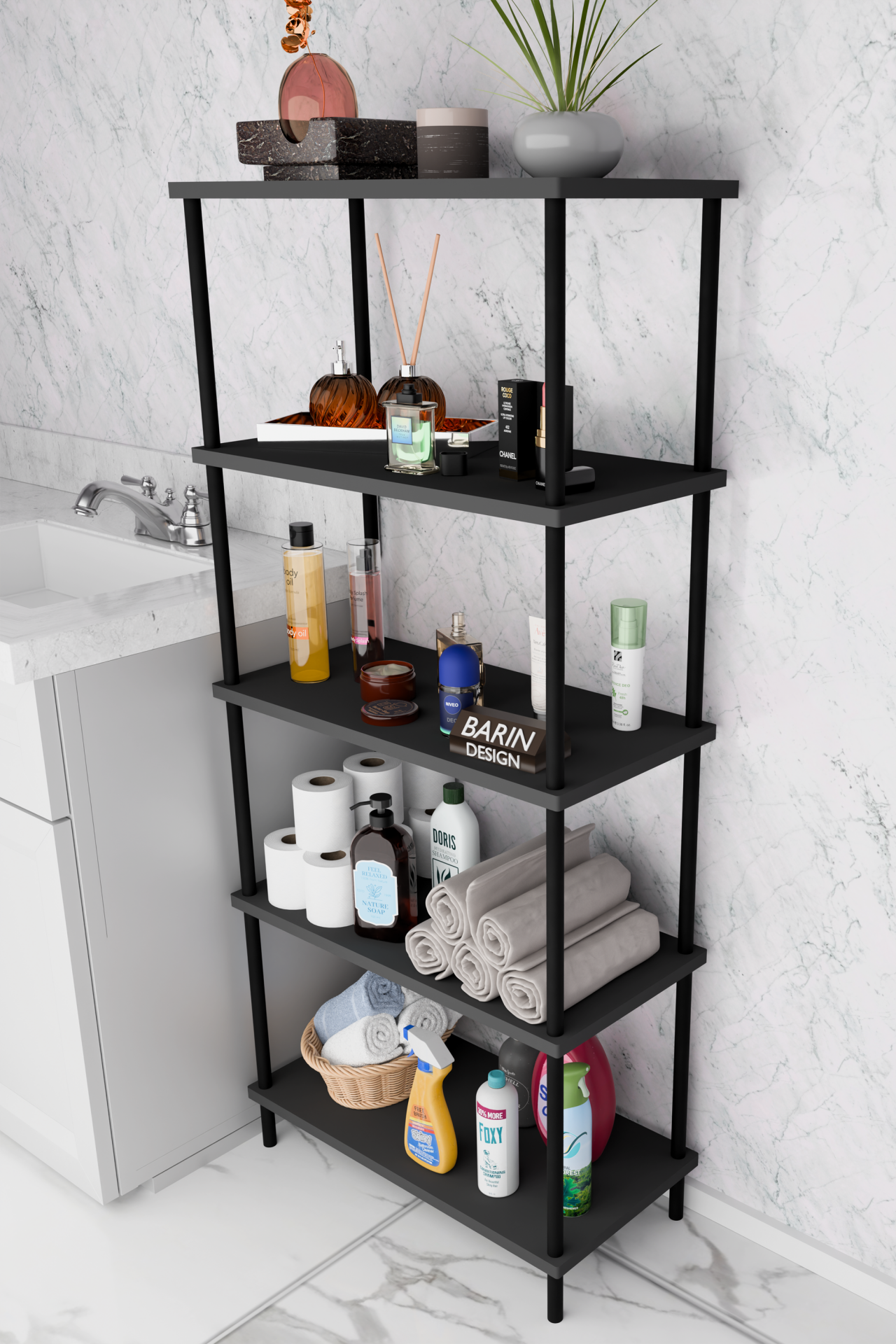 5 Raflı Çevir-Kur Raf Ünitesi | Çok Amaçlı Düzenleyici | Kolay Kurulum Banyo Mutfak Ofis Uyumlu Raf Antrasit