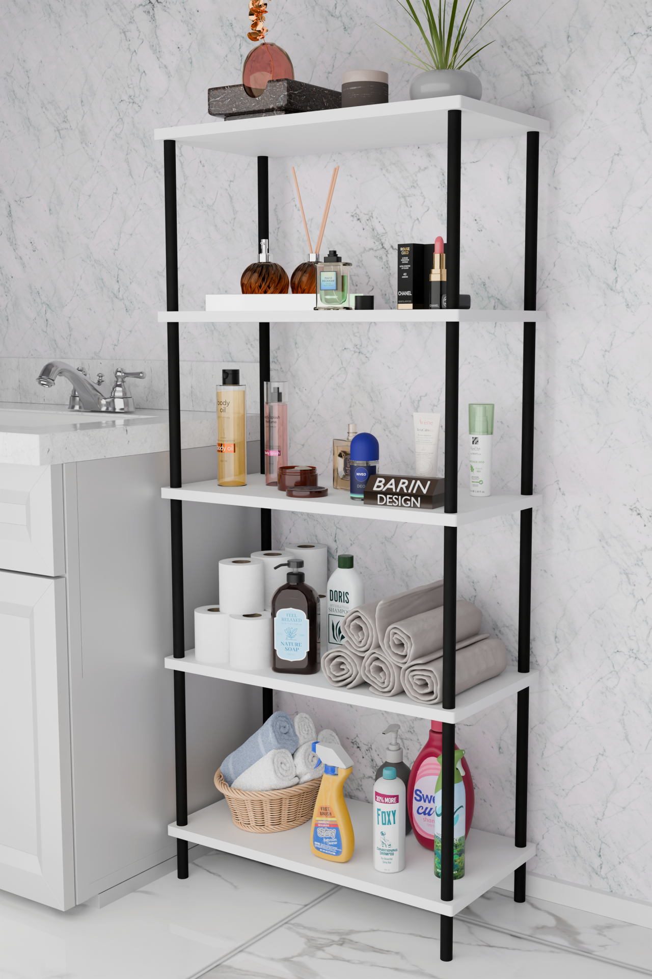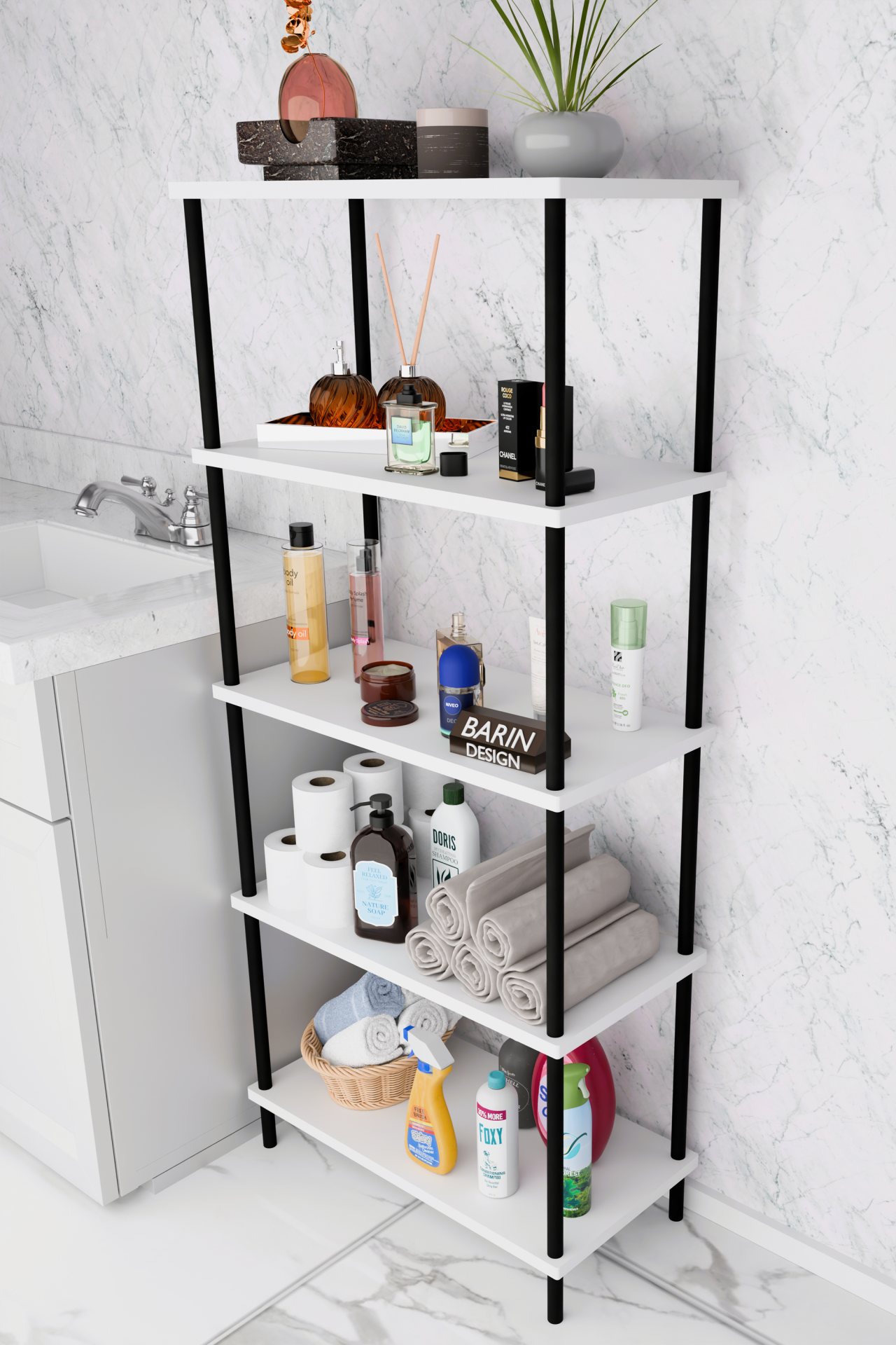 5 Raflı Çevir-Kur Raf Ünitesi | Çok Amaçlı Düzenleyici | Kolay Kurulum Banyo Mutfak Ofis Uyumlu Raf Beyaz