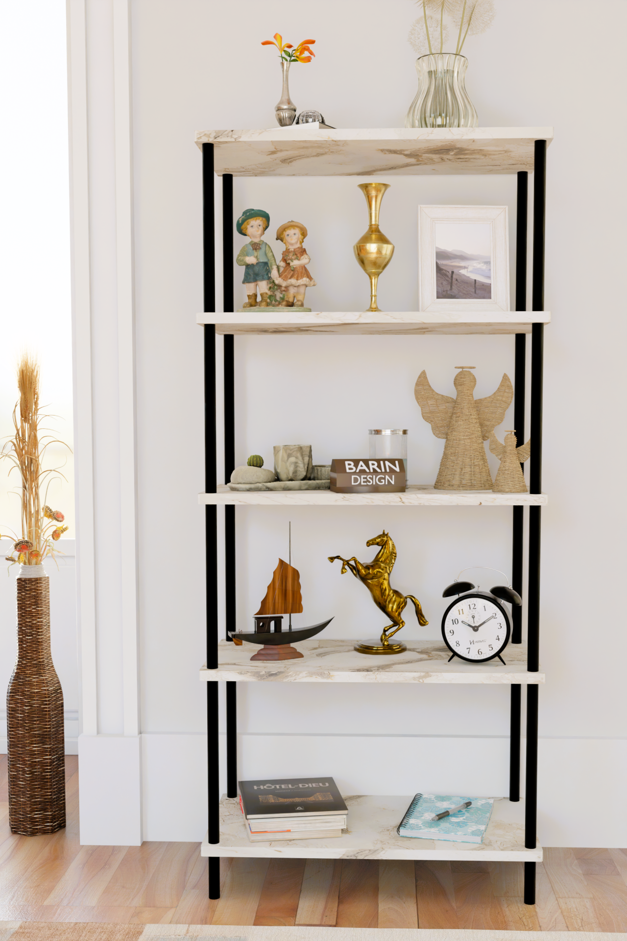 Ev veya ofis dekorasyonunuzu şıklıkla tamamlayacak bir raf ünitesi arıyorsanız, Barin Design imzalı bu 5 raflı kitaplık hem işlevselliği hem de estetik görünümüyle yaşam alanlarınıza yeni bir soluk getirir.