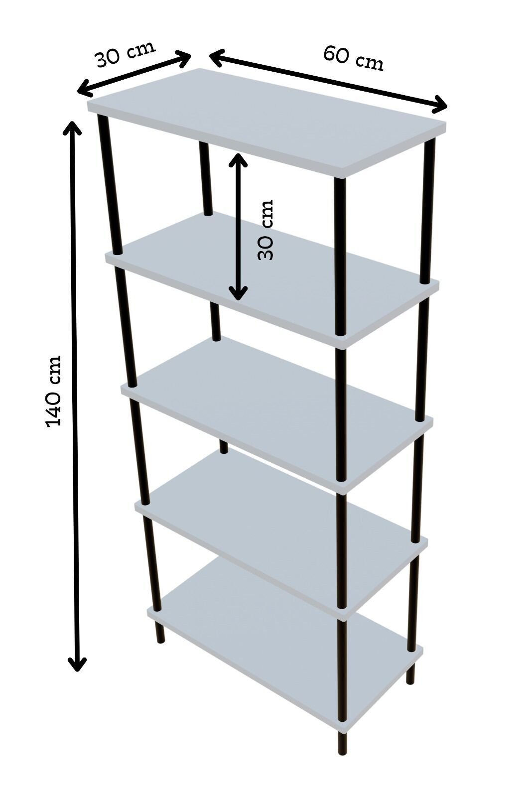 Barın Design 5 Raflı Metal Gövdeli Kitaplık Kolay Kurulumlu Modern ve Dekoratif Raf Sistemi