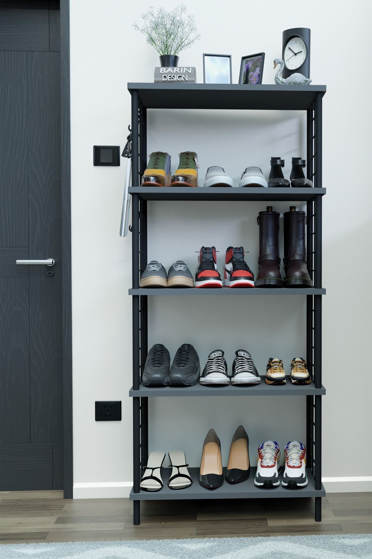 5 Raflı Telli Çevir Kur Çok Amaçlı Ayakkabılık ve Düzenleyici Raf Ünitesi Antre, Banyo, Balkon, Ofis Antrasit