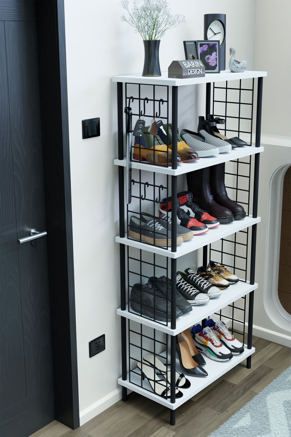 5 Raflı Telli Çevir Kur Çok Amaçlı Ayakkabılık ve Düzenleyici Raf Ünitesi Antre, Banyo, Balkon, Ofis Beyaz