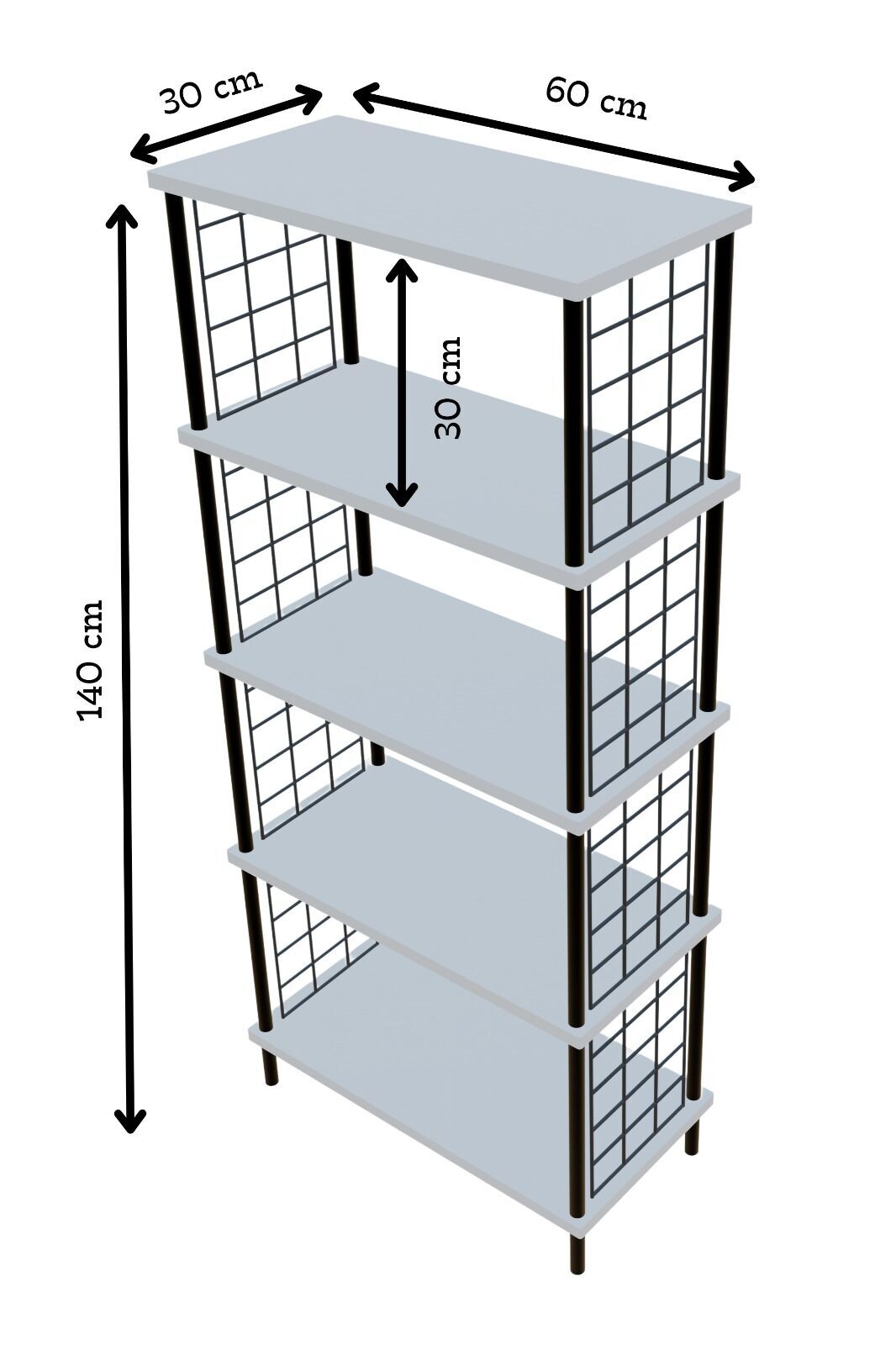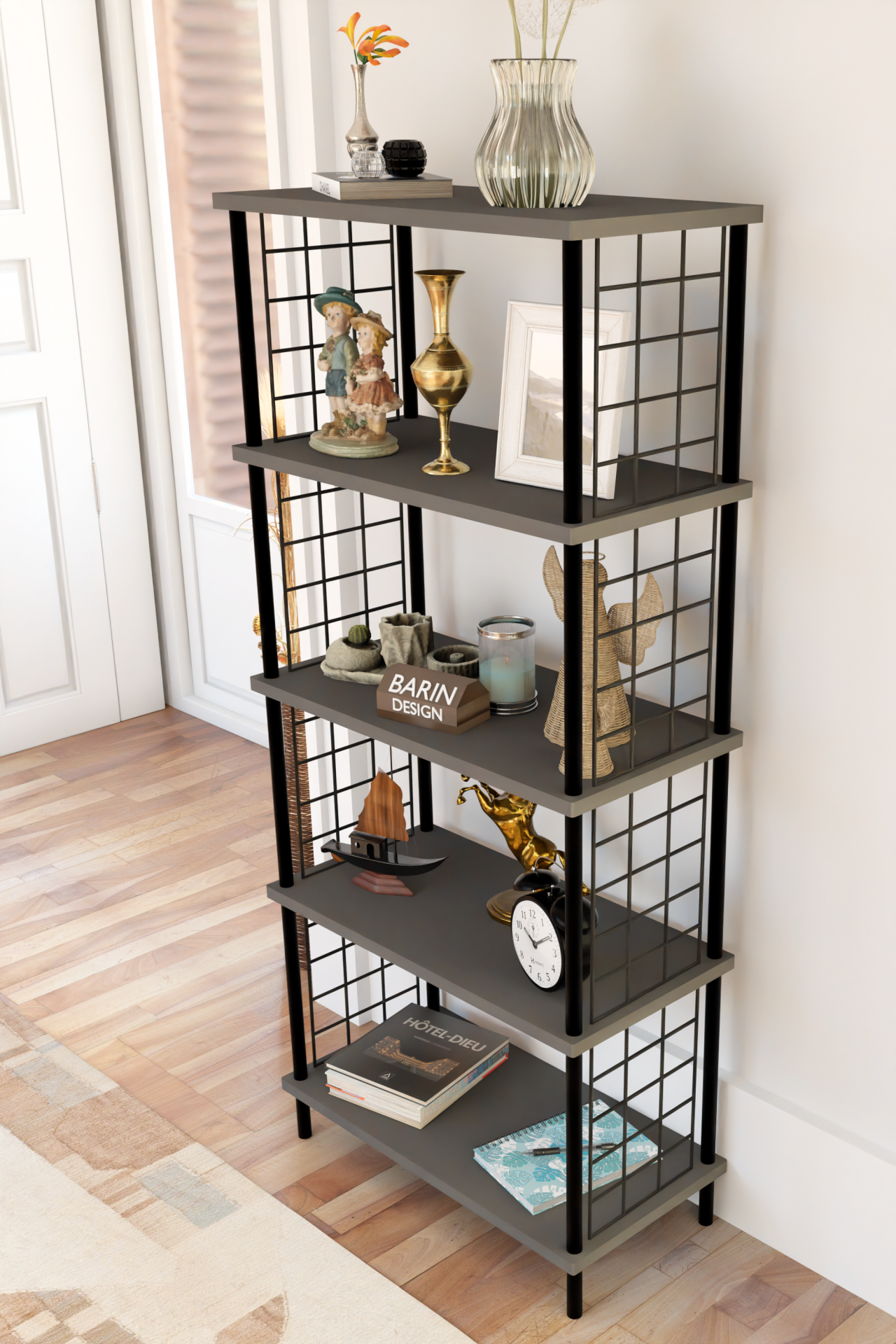 5 Raflı Telli Metal Kitaplık Salon,Ofis,Çalışma Odası Modern Düzenleyici Çevir Tak Kolay Kurulum Raf Antrasit