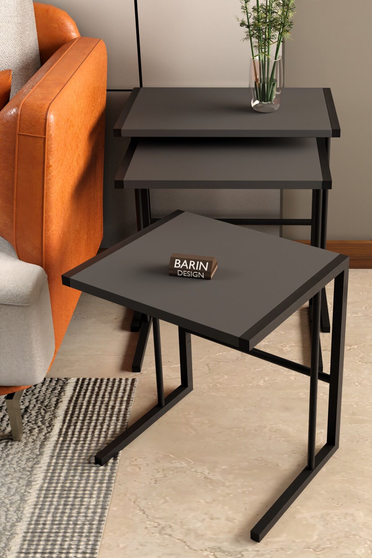 Barin Design C Zigon Sehpa – 3'lü Modern Metal Yan Sehpa, Laptop Masası ve Koltuk Yanı Kahve Sehpası