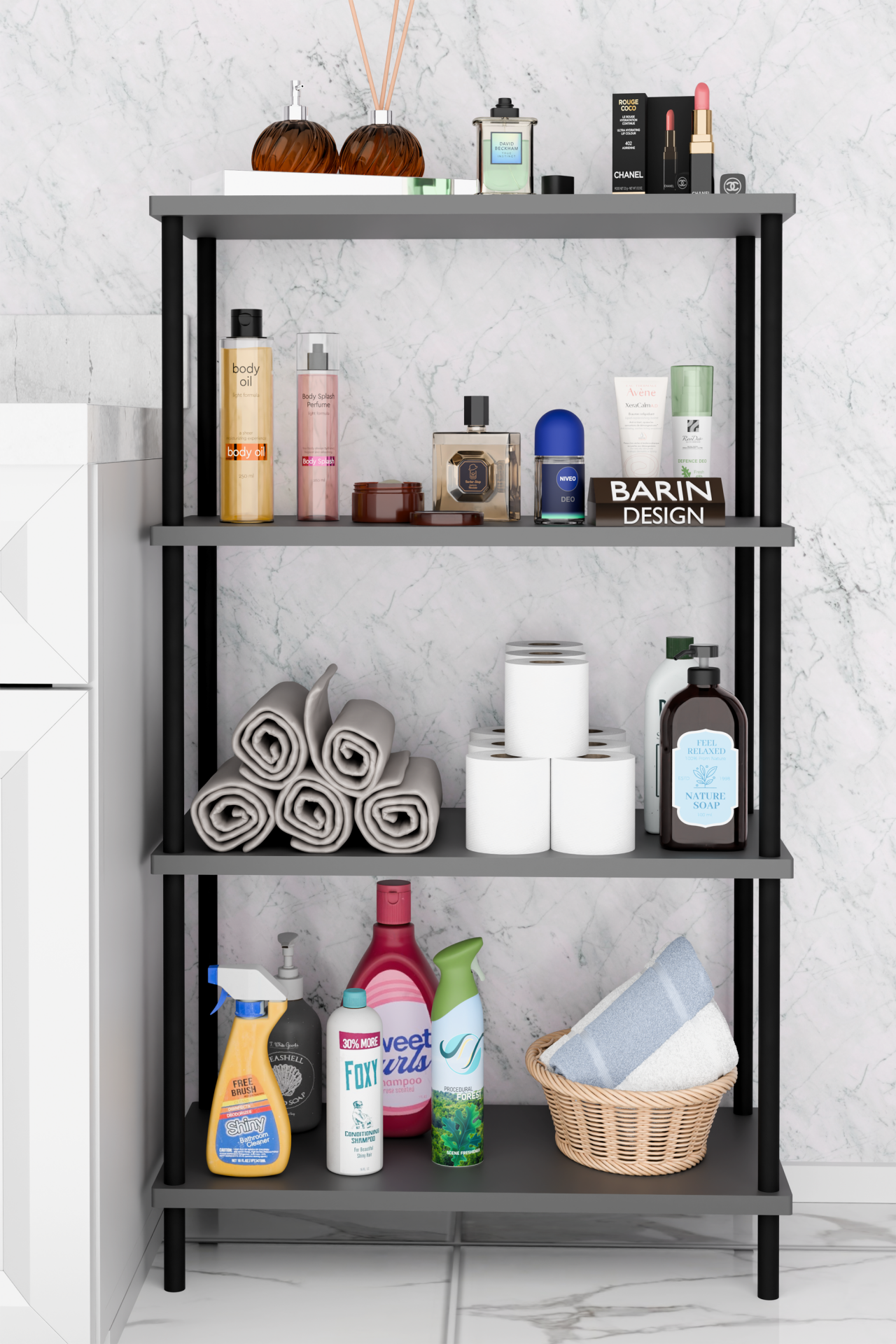 Çevir Kur Kolay Kurulum 4 Katlı Banyo Rafı | Metal Gövdeli Çok Amaçlı Organizer Stand Banyo Dolabı Antrasit