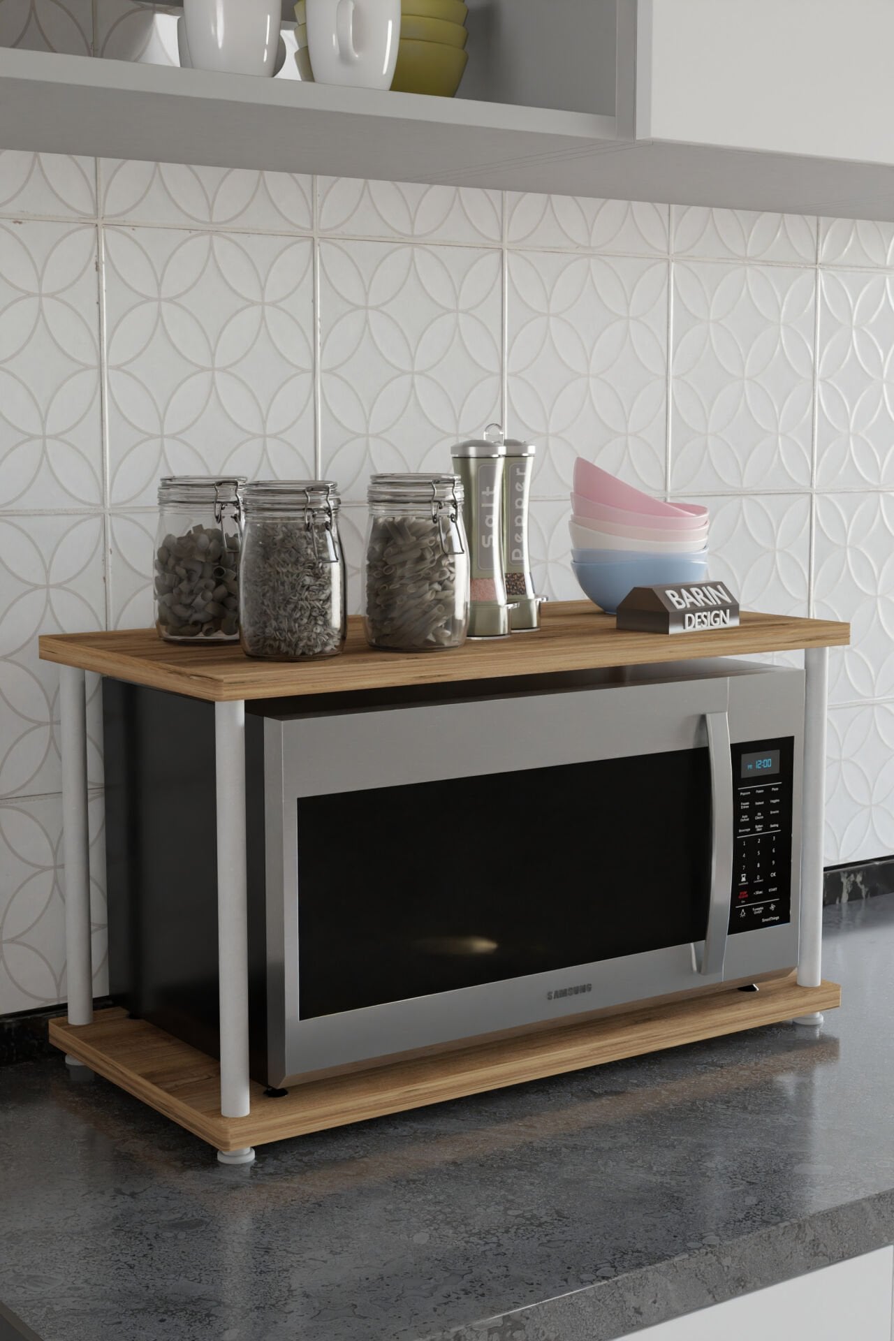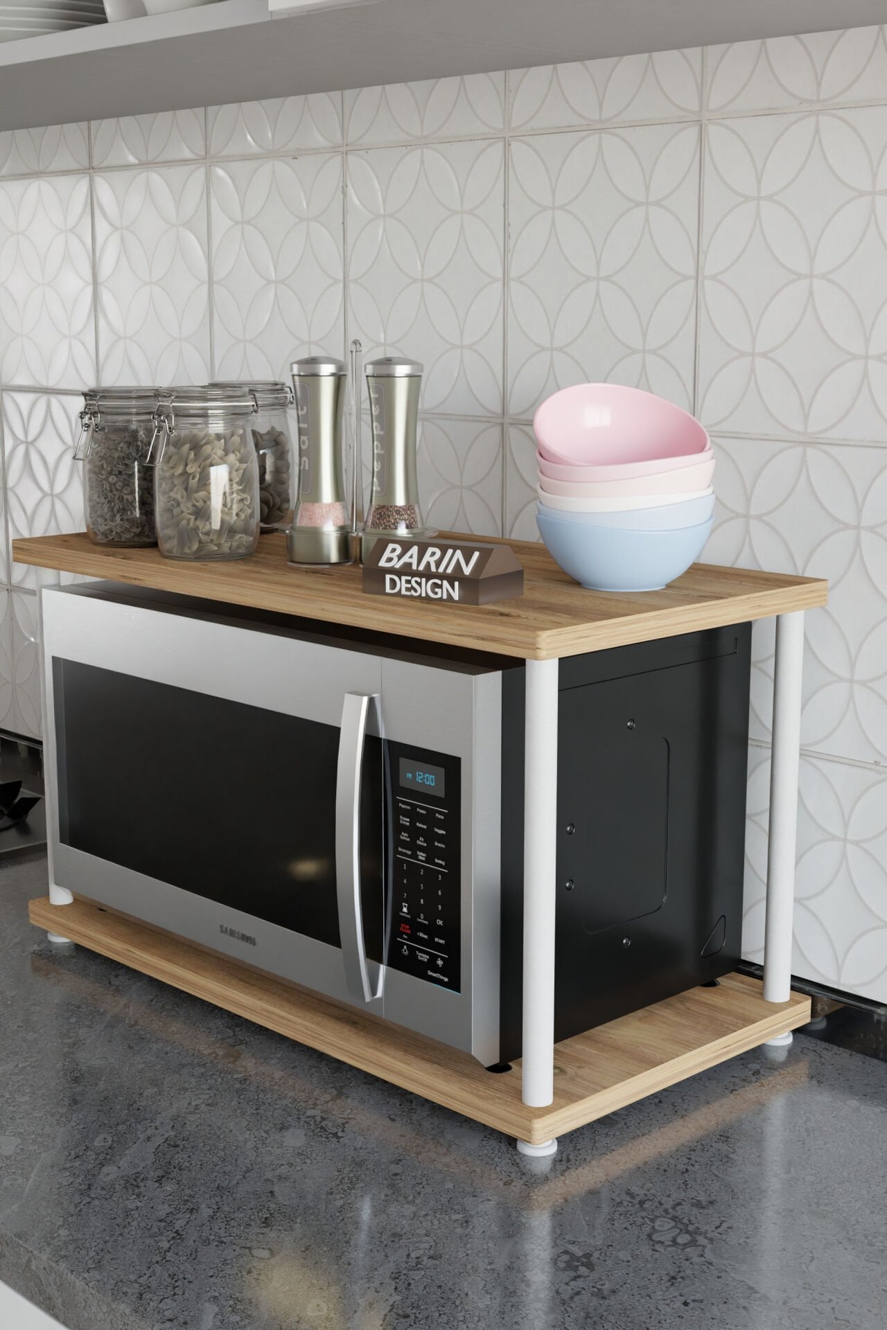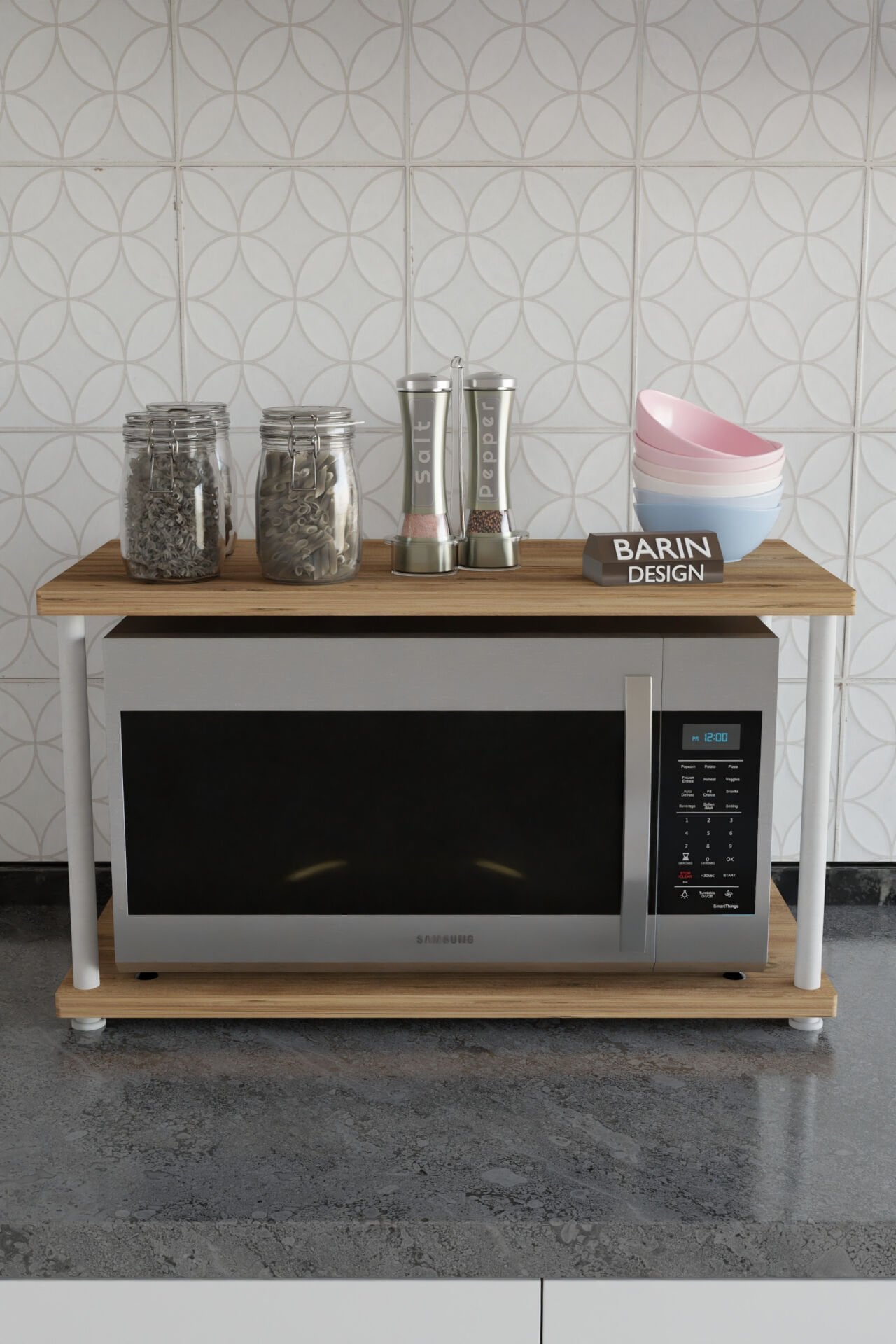 Mikrodalga üstü raf, çok amaçlı tasarımıyla hem pratiklik hem de estetik sunar. Mikrodalga, fırın veya kahve makinesi üzerine konularak üst rafı baharatlık, kavanoz veya kupa düzenleyici olarak kullanabilirsiniz.