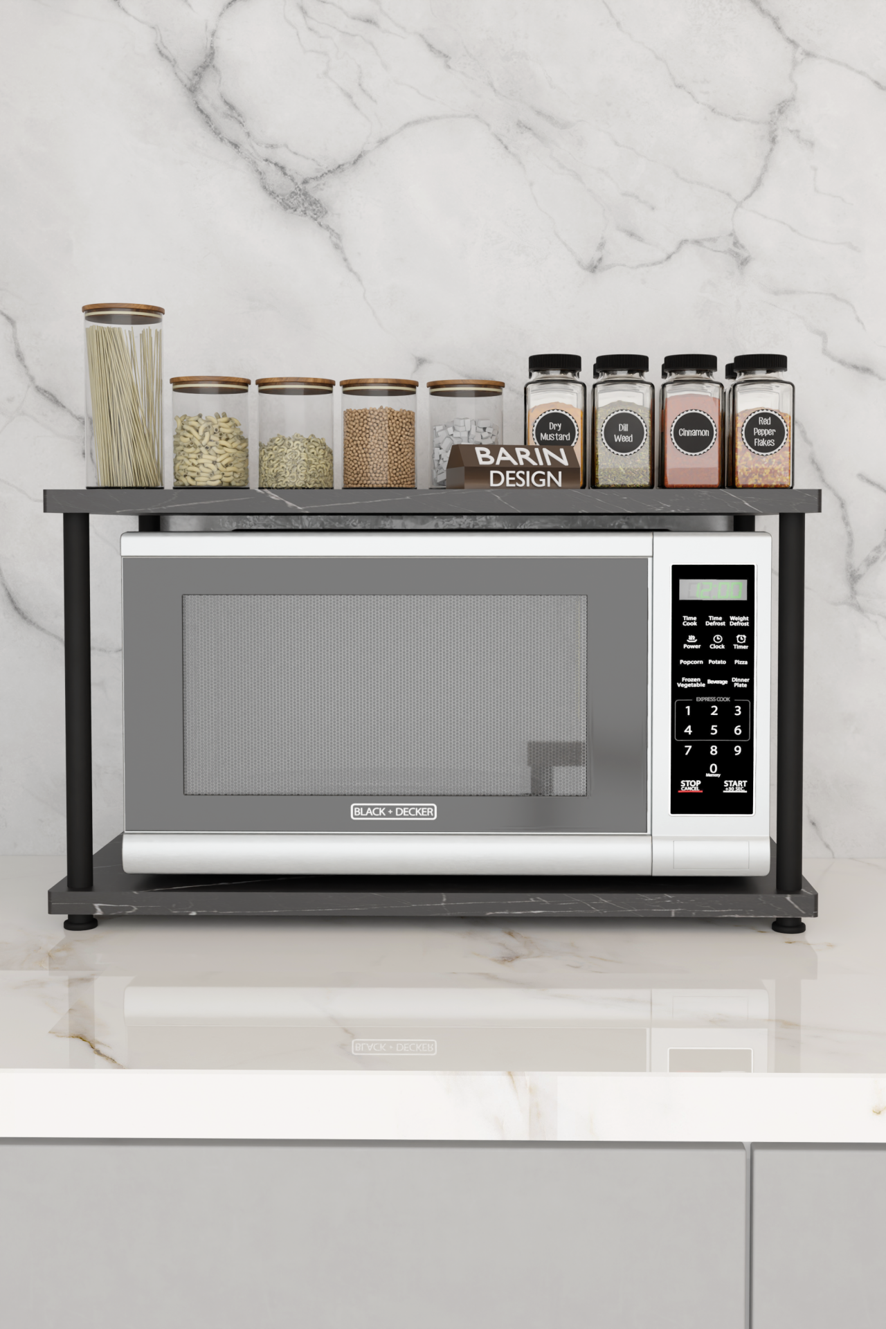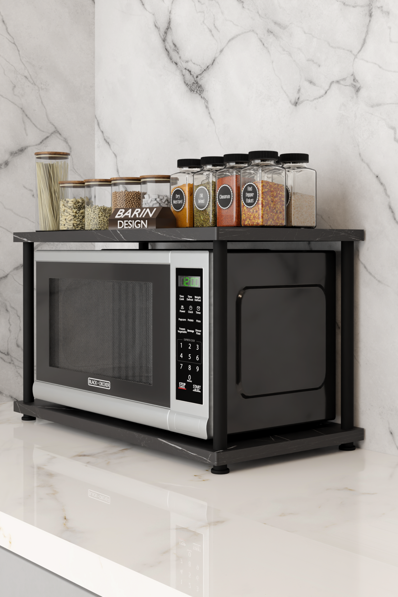 Çevir Kur Mutfak Tezgah Üstü Mikrodalga Rafı Çok Amaçlı Organizer Stand Baharatlık Raf Sistemleri Siyah Mermer