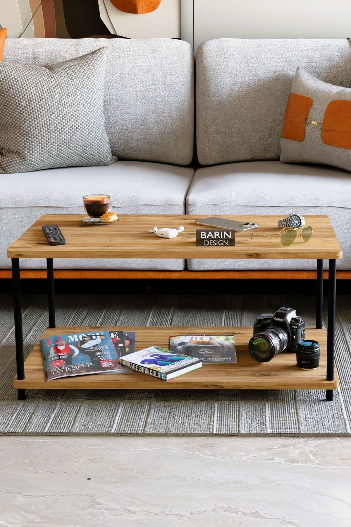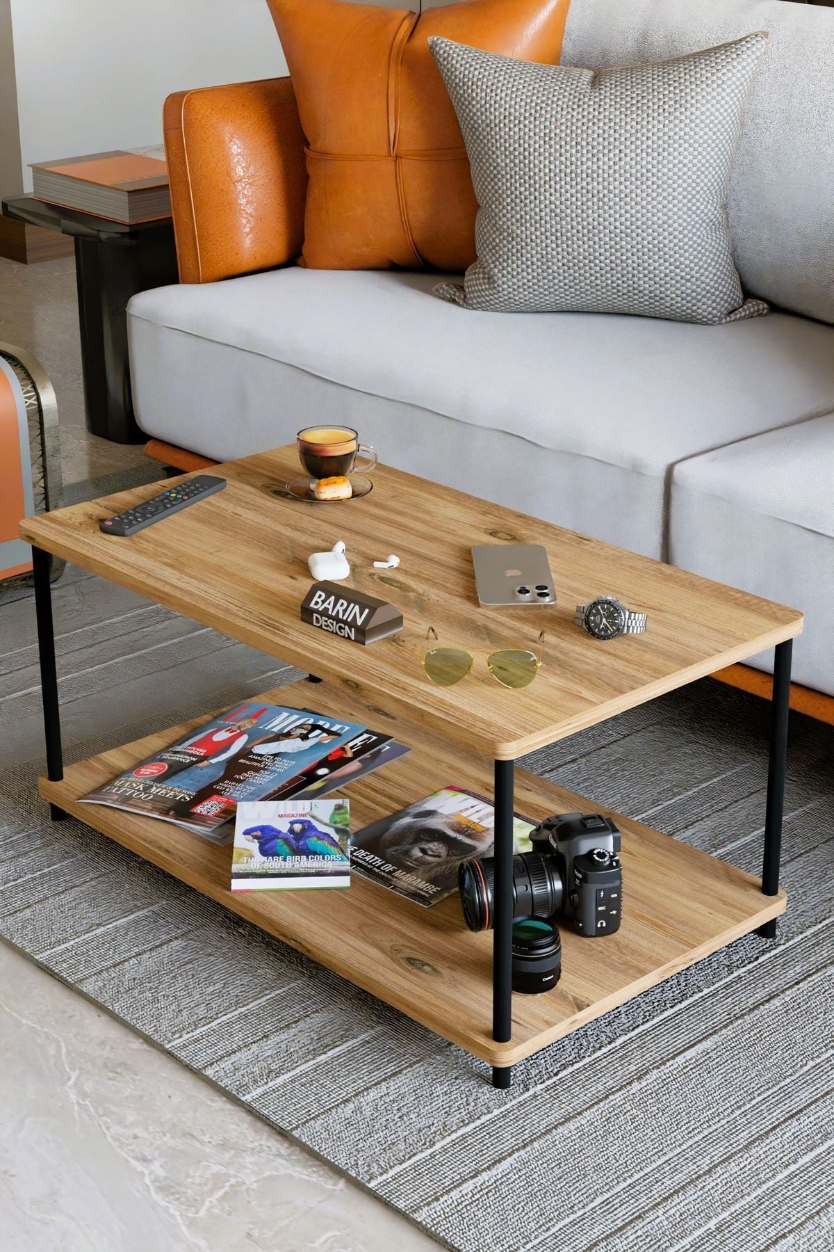 Çevir Tak Dikdörtgen Orta Sehpa 2 Raflı Salon ve Ofis Dekorasyonunda Tamamlayıcı Dekoratif Şık Sehpa Atlantik Çam