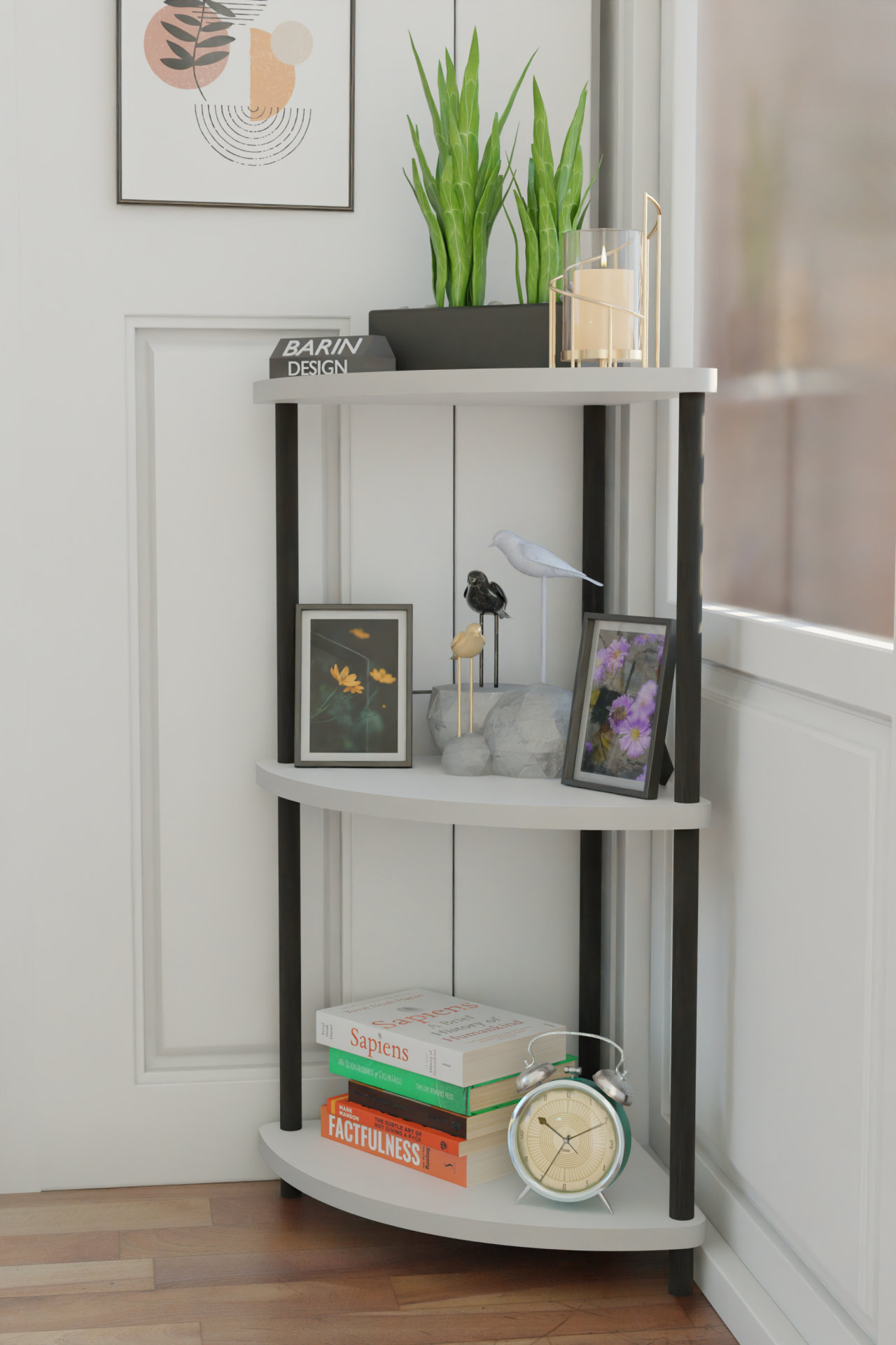Çevirmeli Kurulum 3 Katlı Dekoratif Köşe Rafı Kitaplık Organizer Aksesuar Düzenleyici Raf Ünitesi Beyaz
