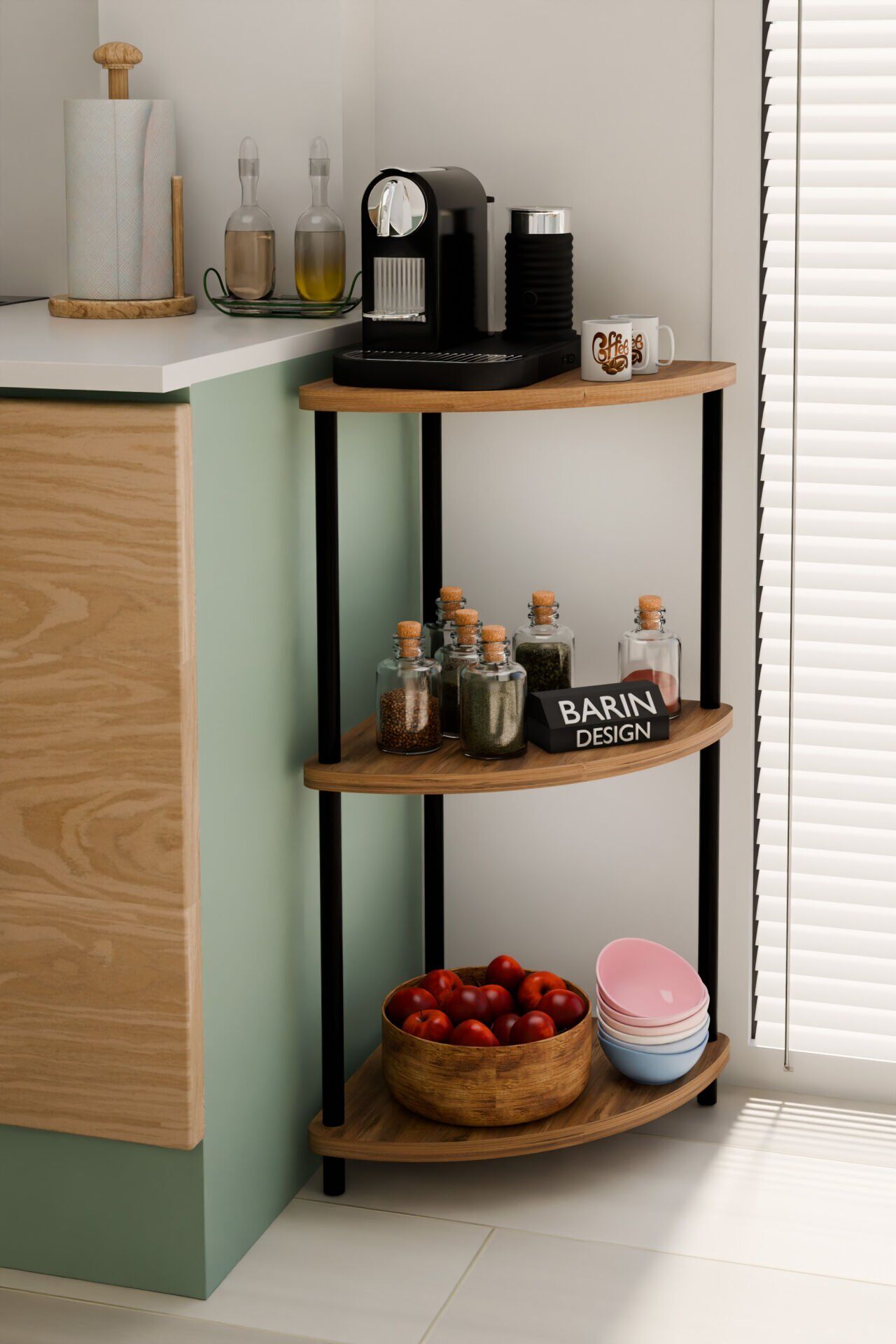 Çevirmeli Kurulum 3 Katlı Mutfak Köşe Rafı Baharatlık Sebzelik Kahve Köşesi Organizeri Atlantik Çam