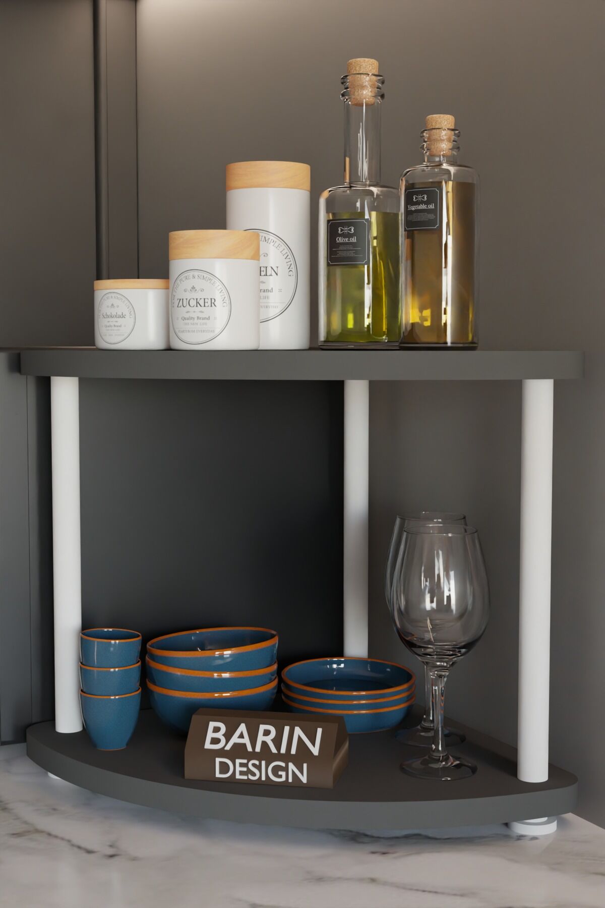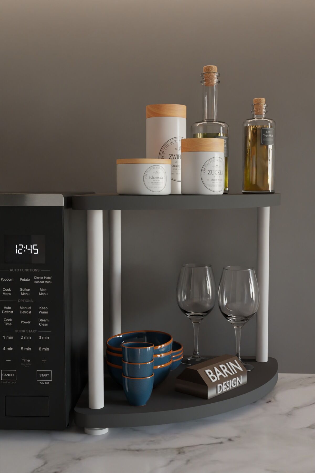 BARIN DESİGN Kahve Köşesi Raf – Çok Amaçlı Mutfak Standı, Mutfak Rafı, Tezgah Üstü Düzenleyici, Çift Katlı, Şık ve Pratik Tasarım