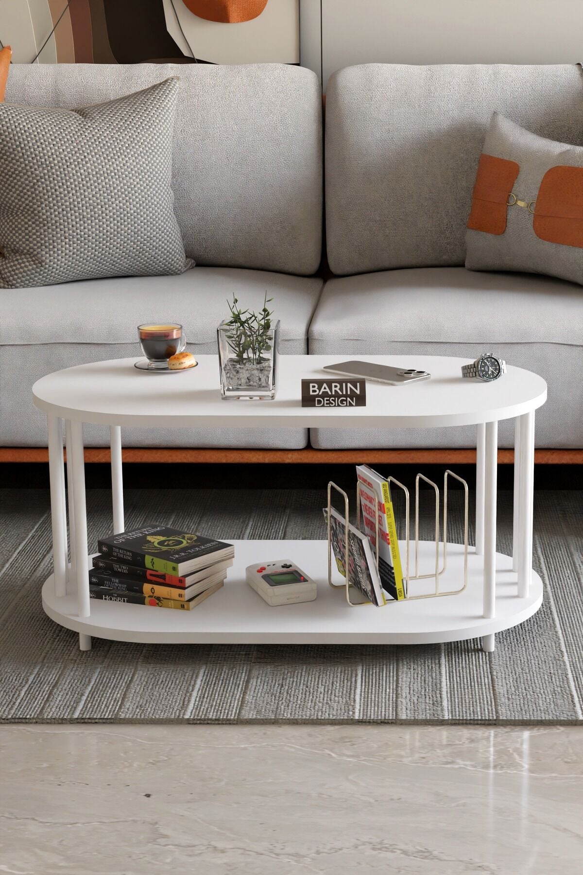 - Oval orta sehpa (üst ve alt tabla)