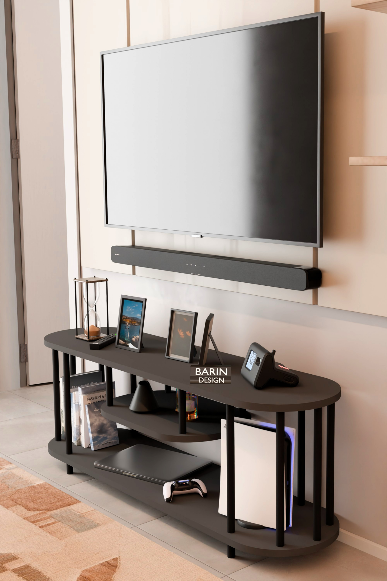 Modern TV Ünitesi Ahşap Raflı 2 Katlı Televizyon Sehpası Minimalist,Dayanıklı, Fonksiyonel TV Standı Antrasit