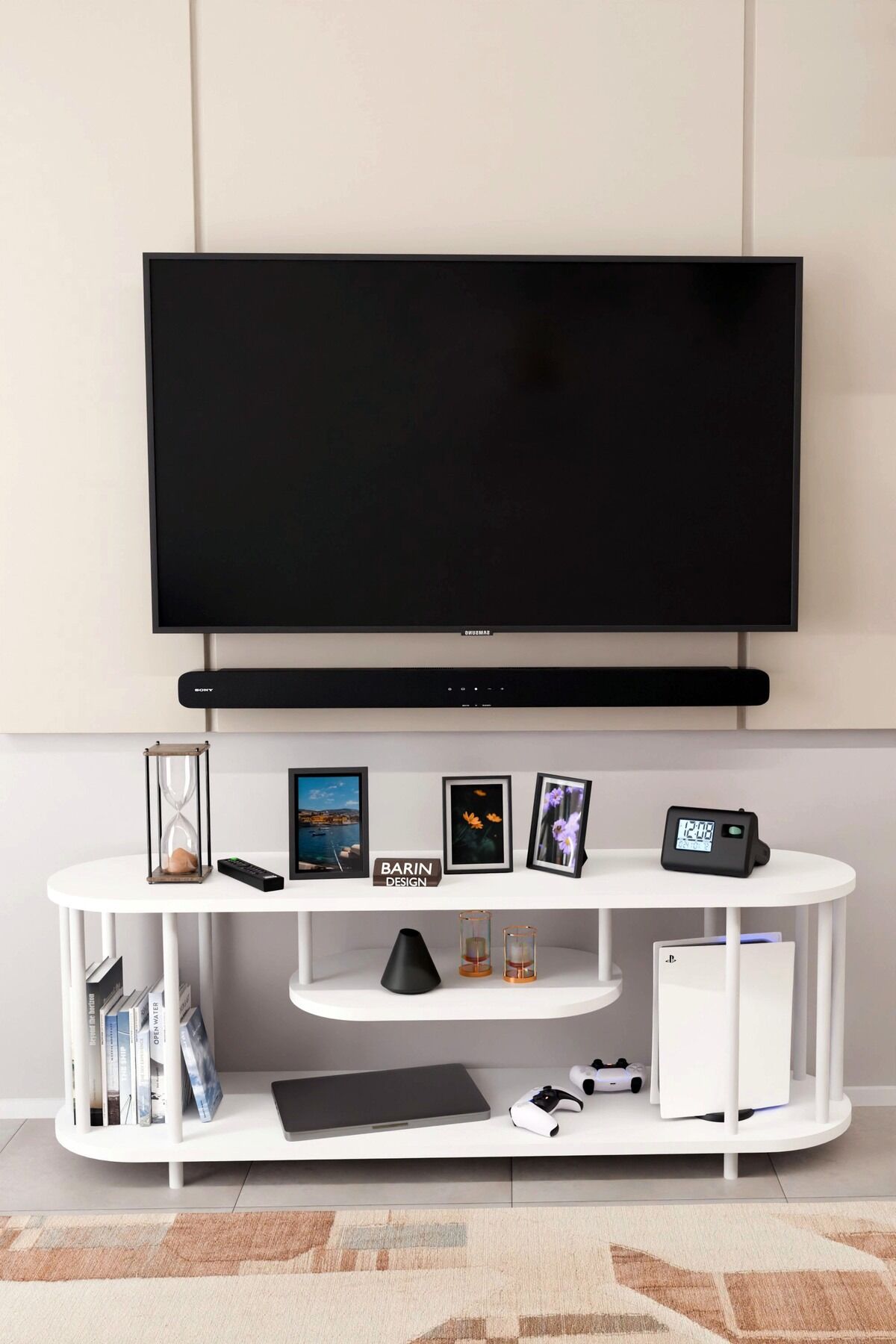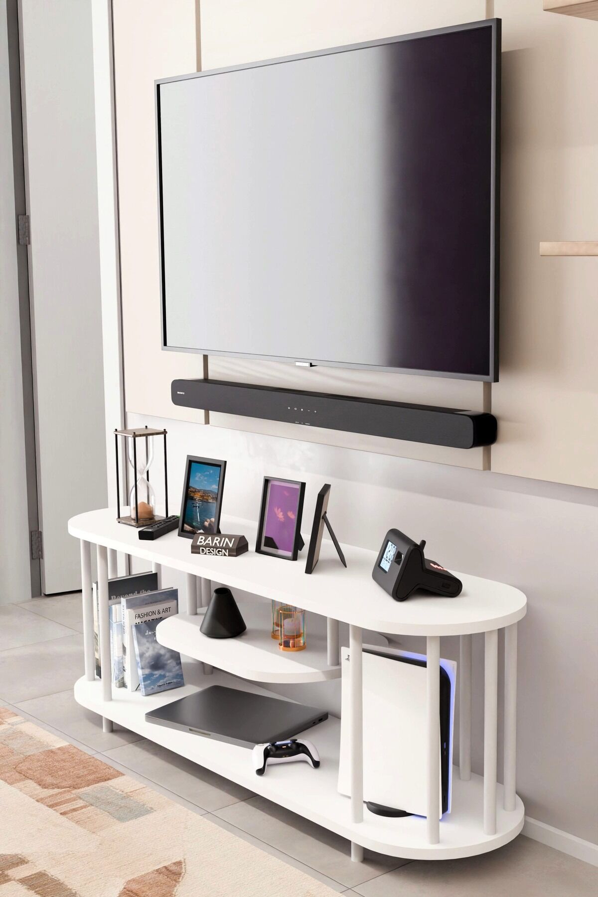 BARIN DESİGN Modern TV Ünitesi Ahşap Raflı 2 Katlı Televizyon Sehpası Minimalist, Dayanıklı, Fonksiyonel TV Standı