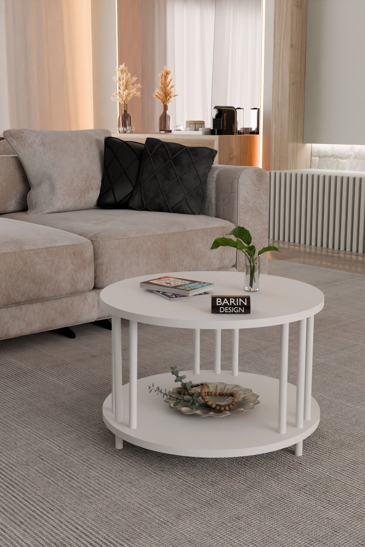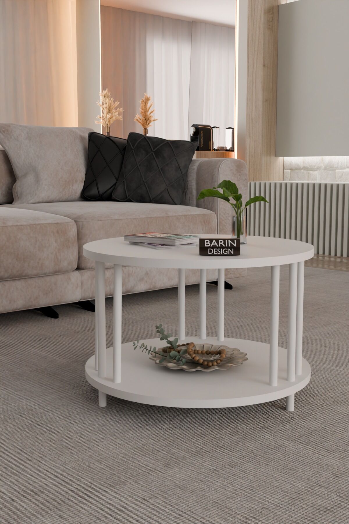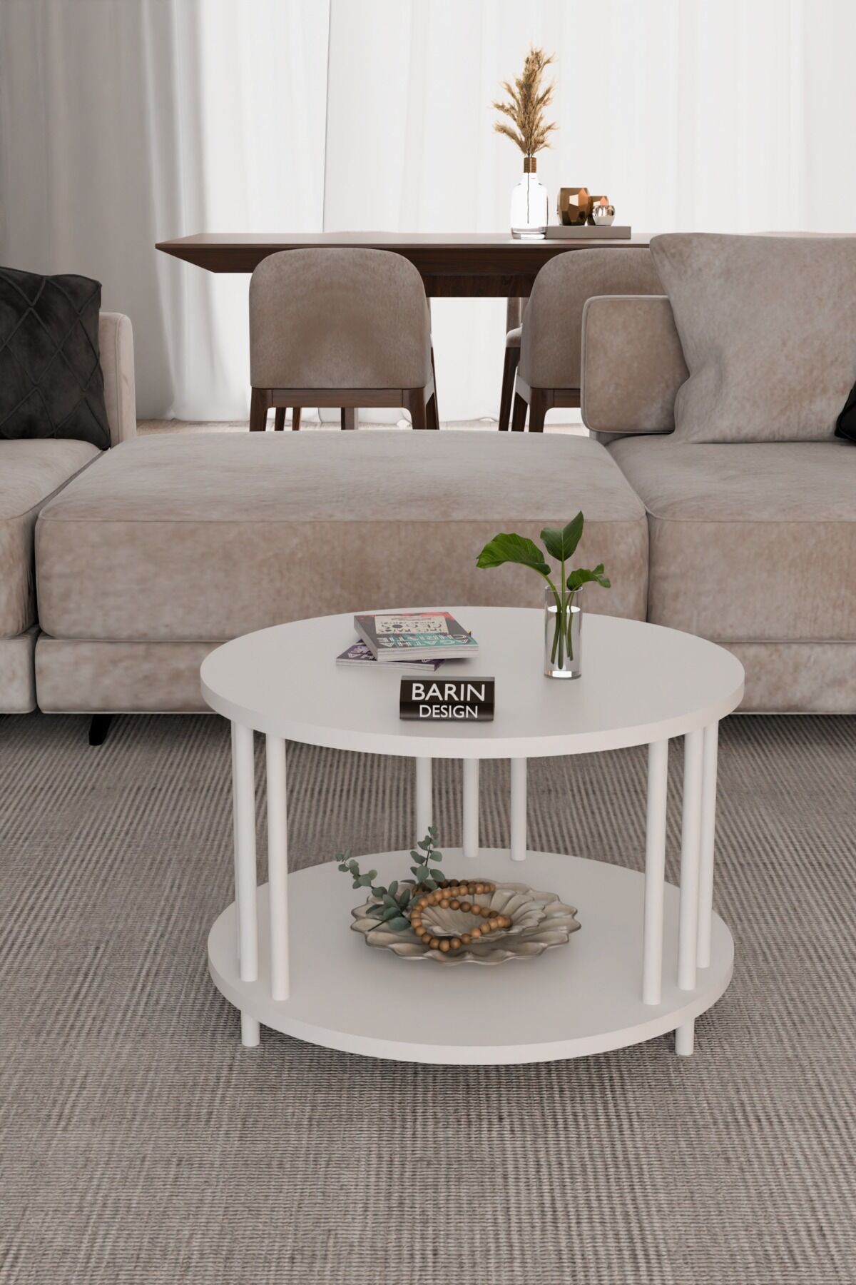 Evinizin dekorasyonuna modern bir dokunuş katmak için tasarlanmış yuvarlak çift katlı orta sehpa, minimalist ve estetik görünümü ile dikkat çeker.