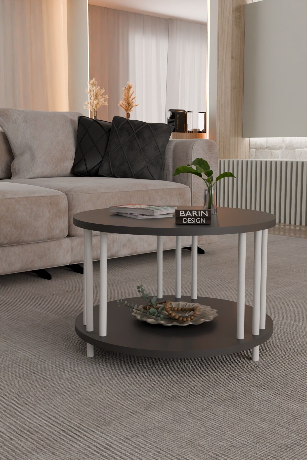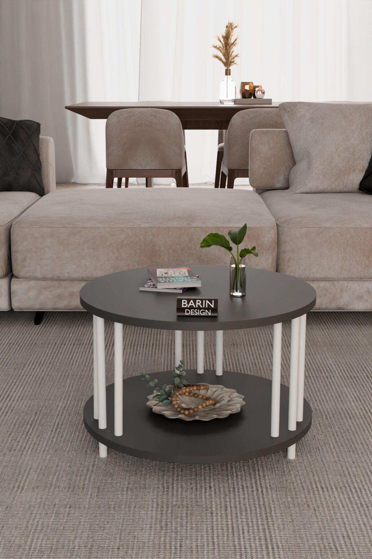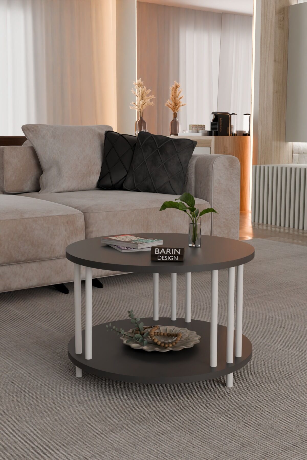 Evinizin dekorasyonuna modern bir dokunuş katmak için tasarlanmış yuvarlak çift katlı orta sehpa, minimalist ve estetik görünümü ile dikkat çeker.