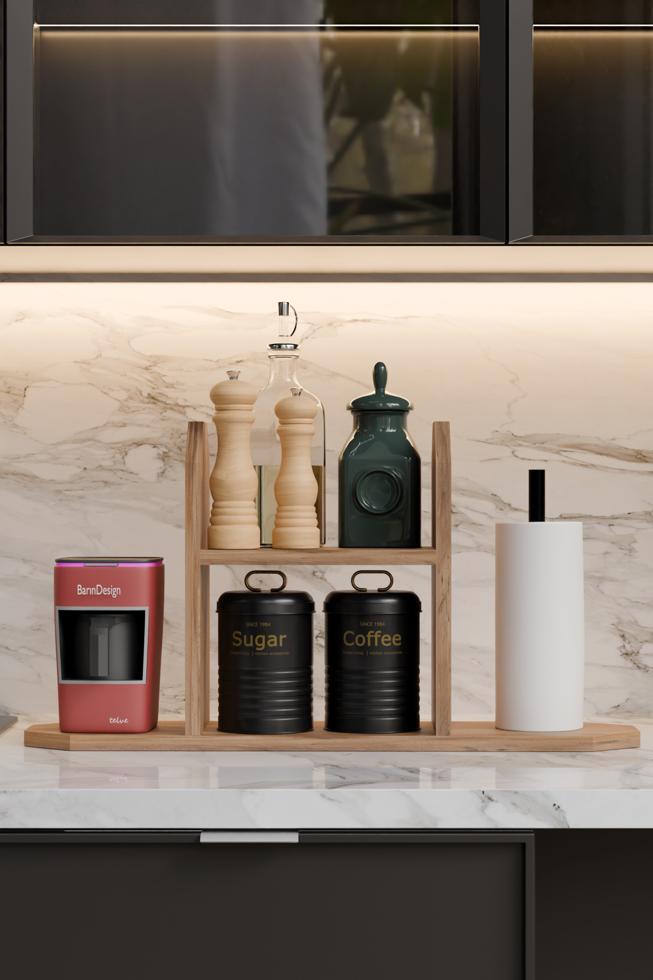 Mutfak Düzenleyici Raf ,Baharatlık, Kağıt Havluluk , Kahve Köşesi Standı, Peçetelik Tezgahüstü Raf Atlantik Çam